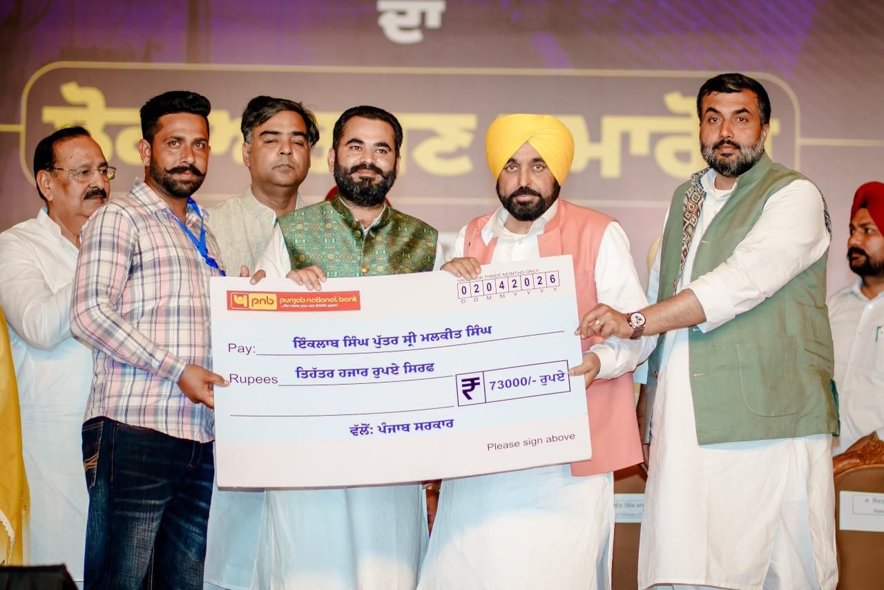ਮੁੱਖ ਮੰਤਰੀ ਨੇ ਸ਼ਹੀਦ ਪਰਵਿੰਦਰ ਸਿੰਘ ਦੇ ਪਰਿਵਾਰ ਨੂੰ ਸਨਮਾਨ ਰਾਸ਼ੀ ਵਜੋਂ ਇਕ ਕਰੋੜ ਰੁਪਏ ਦਾ ਚੈੱਕ ਸੌਂਪਿਆ