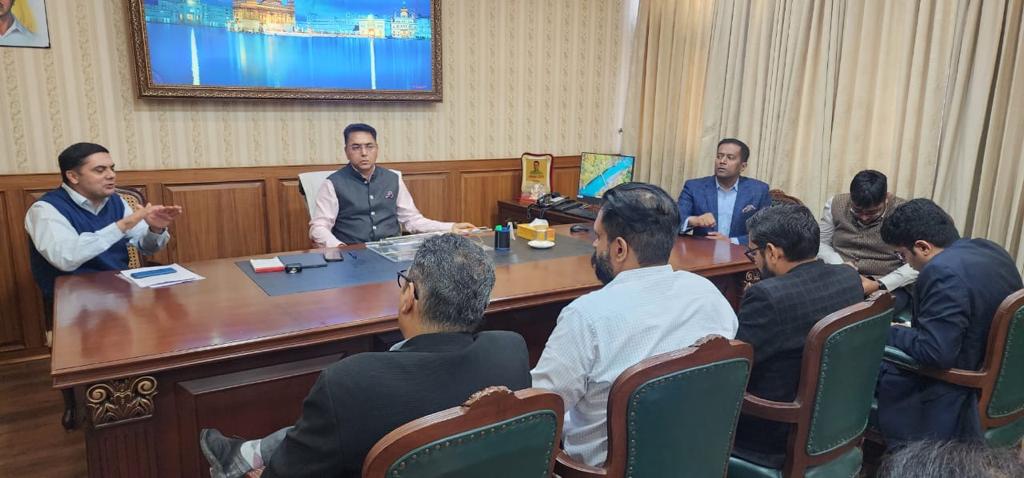 ਇੱਥੇ ਆਪਣੇ ਦਫ਼ਤਰ ਵਿਖੇ ਇੱਕ ਉੱਚ-ਪੱਧਰੀ ਮੀਟਿੰਗ ਦੀ ਪ੍ਰਧਾਨਗੀ ਕਰਦਿਆਂ ਸ੍ਰੀ ਅਮਨ ਅਰੋੜਾ ਨੇ ਪ੍ਰਸ਼ਾਸਨਿਕ ਸੁਧਾਰ ਵਿਭਾਗ (ਡੀ.ਜੀ.ਆਰ.) ਦੇ ਸੀਨੀਅਰ ਅਧਿਕਾਰੀਆਂ ਅਤੇ ਸੇਵਾ ਕੇਂਦਰ ਅਪਰੇਟਰ ਨਾਲ ਡੋਰ-ਸਟੈੱਪ ਸਰਵਿਸ ਡਿਲੀਵਰੀ ਨਾਲ ਸਬੰਧਤ ਸਾਰੀਆਂ ਗਤੀਵਿਧੀਆਂ ਦੀ ਤਿਆਰੀ ਬਾਰੇ ਵਿਸਥਾਰਪੂਰਵਕ ਸਮੀਖਿਆ ਕੀਤੀ।