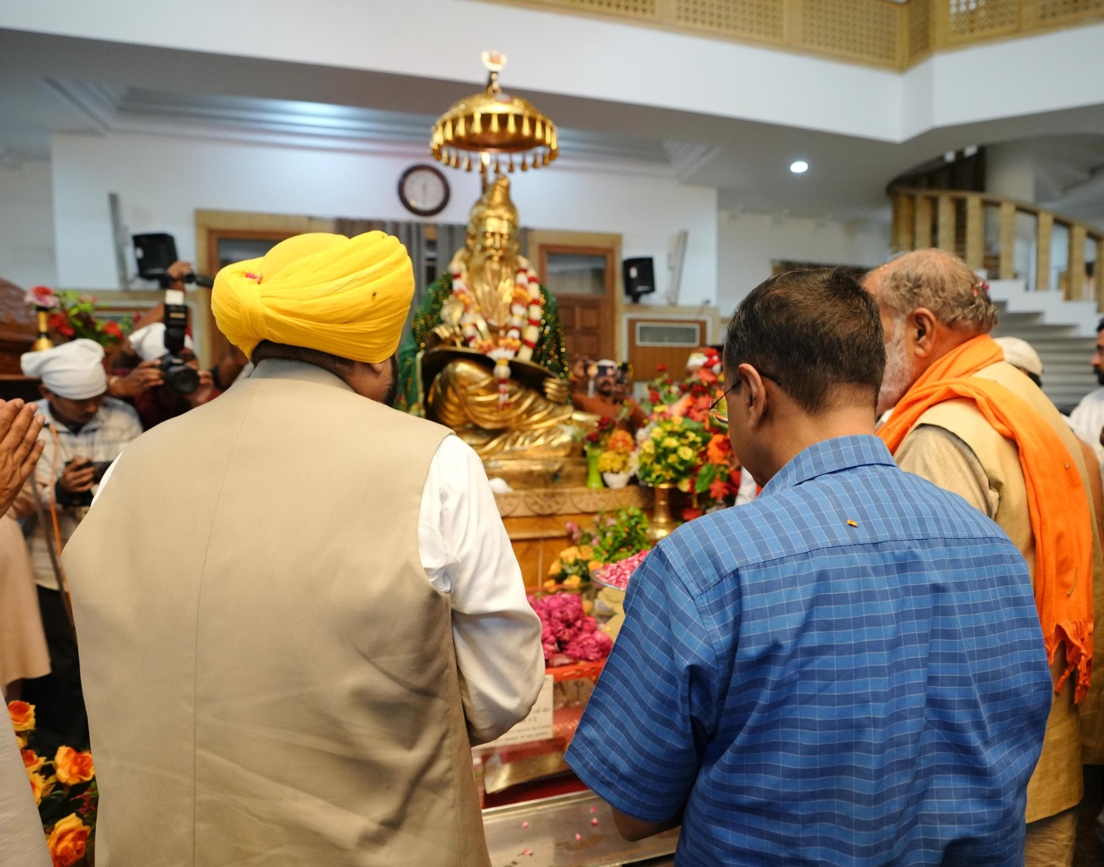 ਆਮ ਆਦਮੀ ਪਾਰਟੀ (ਆਪ) ਦੇ ਕੌਮੀ ਕਨਵੀਨਰ ਅਤੇ ਦਿੱਲੀ ਦੇ ਮੁੱਖ ਮੰਤਰੀ ਅਰਵਿੰਦ ਕੇਜਰੀਵਾਲ ਨੇ ਪੰਜਾਬ ਦੇ ਮੁੱਖ ਮੰਤਰੀ ਭਗਵੰਤ ਮਾਨ ਨਾਲ ਸ਼ੁੱਕਰਵਾਰ ਸਵੇਰੇ ਅੰਮ੍ਰਿਤਸਰ ਦੇ ਭਗਵਾਨ ਸ੍ਰੀ ਵਾਲਮੀਕਿ ਤੀਰਥ ਅਸਥਾਨ ਵਿਖੇ ਮੱਥਾ ਟੇਕਿਆ ਅਤੇ ਪੰਜਾਬ ਦੀ ਖ਼ੁਸ਼ਹਾਲੀ ਲਈ ਅਰਦਾਸ ਕੀਤੀ।
