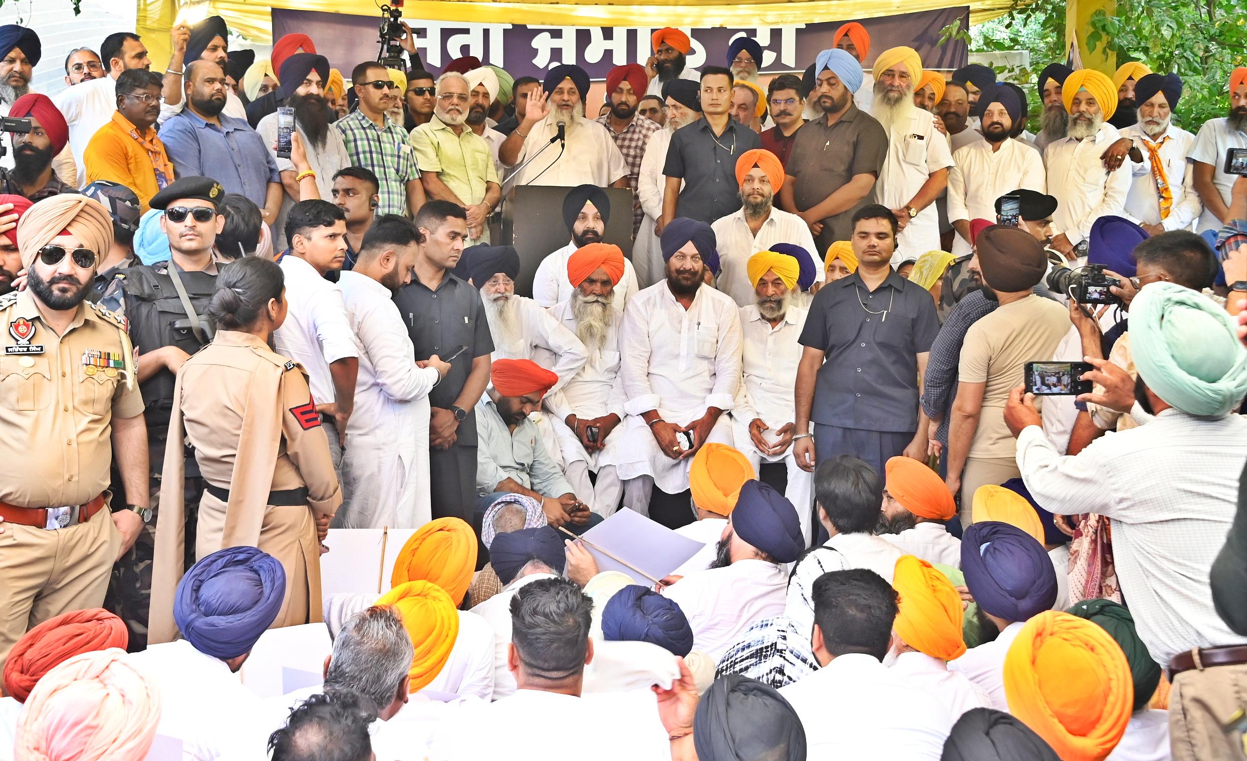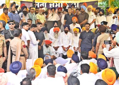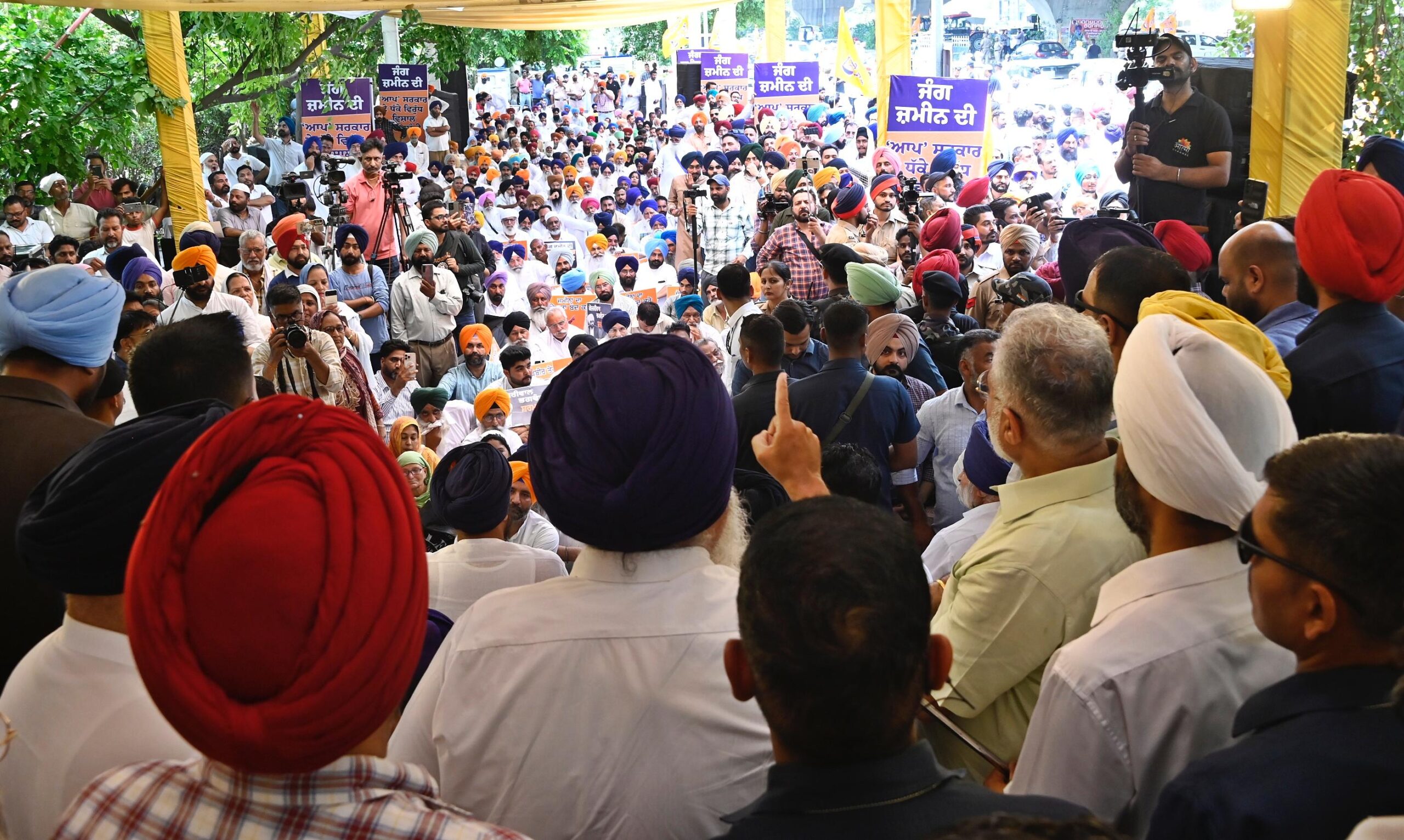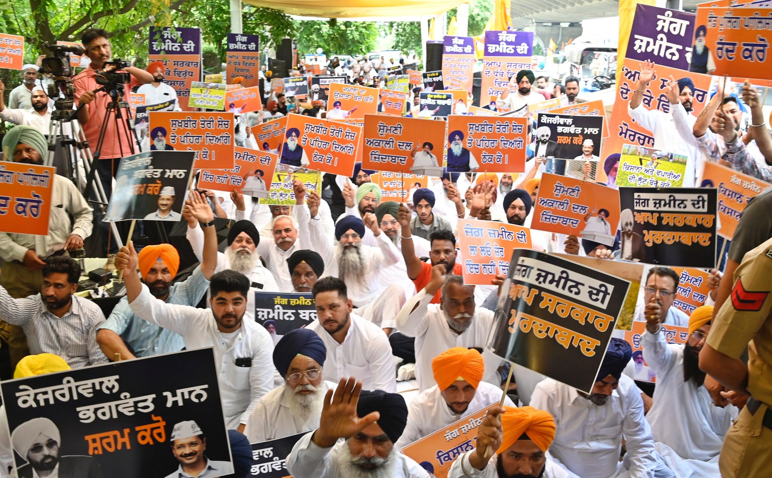 ਇਥੇ ਗਲਾਡਾ ਦਫਤਰ ਦੇ ਸਾਹਮਣੇ ’’ਜੰਗ ਪੰਜਾਬ ਬਚਾਉਣ ਦੀ’ ਮੁਹਿੰਮ ਤਹਿਤ ਵਿਸ਼ਾਲ ਧਰਨਾ, ਜਿਸ ਵਿਚ ਅਕਾਲੀ ਵਰਕਰ ਤੇ ਕਿਸਾਨ ਵੱਡੀ ਗਿਣਤੀ ਵਿਚ ਸ਼ਾਮਲ ਹੋਏ ਨੂੰ ਸੰਬੋਧਨ ਕਰਦਿਆਂ ਸ਼੍ਰੋਮਣੀ ਅਕਾਲੀ ਦਲ ਦੇ ਪ੍ਰਧਾਨ ਨੇ ਸਪਸ਼ਟ ਕਿਹਾ ਕਿ ਪਾਰਟੀ ਆਪ ਸਰਕਾਰ ਨੂੰ ਇਕ ਇੰਚ ਵੀ ਜ਼ਮੀਨ ਐਕਵਾਇਰ ਨਹੀਂ ਕਰਨ ਦੇਵੇਗੀ। ਸੁਖਬੀਰ ਬਾਦਲ ਨੇ ਨਾਲ ਹੀ ਕਿਹਾ ਕਿ ਅਸੀਂ ਸਿਰਫ ਆਪ ਪਾਰਟੀ ਦੇ ਖ਼ਜ਼ਾਨੇ ਭਰਨ ਵਾਸਤੇ ਕਿਸਾਨਾਂ ਦੀਆਂ ਜ਼ਮੀਨਾਂ ਲੁੱਟਣ ਦੀ ਆਪ ਦੀ ਸਾਜ਼ਿਸ਼ ਸਫਲ ਨਹੀਂ ਹੋਣ ਦਿਆਂਗੇ। ਉਹਨਾਂ ਇਹ ਵੀ ਸਪਸ਼ਟ ਕੀਤਾ ਕਿ ਅਕਾਲੀ ਦਲ ਇਹ ਸੰਘਰਸ਼ ਹੋਰ ਸ਼ਹਿਰਾਂ ਵਿਚ ਵੀ ਲੈ ਕੇ ਜਾਵੇਗਾ ਜਿਥੇ ਕਿਸਾਨਾਂ ਤੋਂ ਉਹਨਾਂ ਦੀਆਂ ਬੇਸ਼ਕੀਮਤੀ ਜ਼ਮੀਨਾਂ ਖੋਹੀਆਂ ਜਾ ਰਹੀਆਂ ਹਨ।