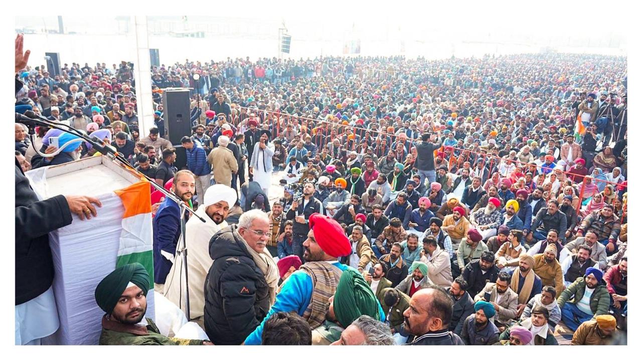 ਛੱਤੀਸਗੜ੍ਹ ਦੇ ਸਾਬਕਾ ਮੁੱਖ ਮੰਤਰੀ ਅਤੇ ਪੰਜਾਬ ਦੇ ਇੰਚਾਰਜ ਜਨਰਲ ਸਕੱਤਰ ਭੁਪੇਸ਼ ਬਘੇਲ, ਪੰਜਾਬ ਕਾਂਗਰਸ ਪ੍ਰਧਾਨ ਅਮਰਿੰਦਰ ਸਿੰਘ ਰਾਜਾ ਵੜਿੰਗ, ਸਾਬਕਾ ਮੁੱਖ ਮੰਤਰੀ ਚਰਨਜੀਤ ਸਿੰਘ ਚੰਨੀ, ਏ.ਆਈ.ਸੀ.ਸੀ ਸਕੱਤਰ ਰਵਿੰਦਰ ਦਲਵੀ, ਸਾਬਕਾ ਮੰਤਰੀ ਭਾਰਤ ਭੂਸ਼ਣ ਆਸ਼ੂ, ਰਾਣਾ ਗੁਰਜੀਤ ਸਿੰਘ ਅਤੇ ਹੋਰਾਂ ਸਮੇਤ ਕਾਂਗਰਸੀ ਆਗੂਆਂ ਦੀ ਇੱਕ ਗਲੈਕਸੀ ਰੈਲੀ ਵਿੱਚ ਸ਼ਾਮਲ ਹੋਈ।