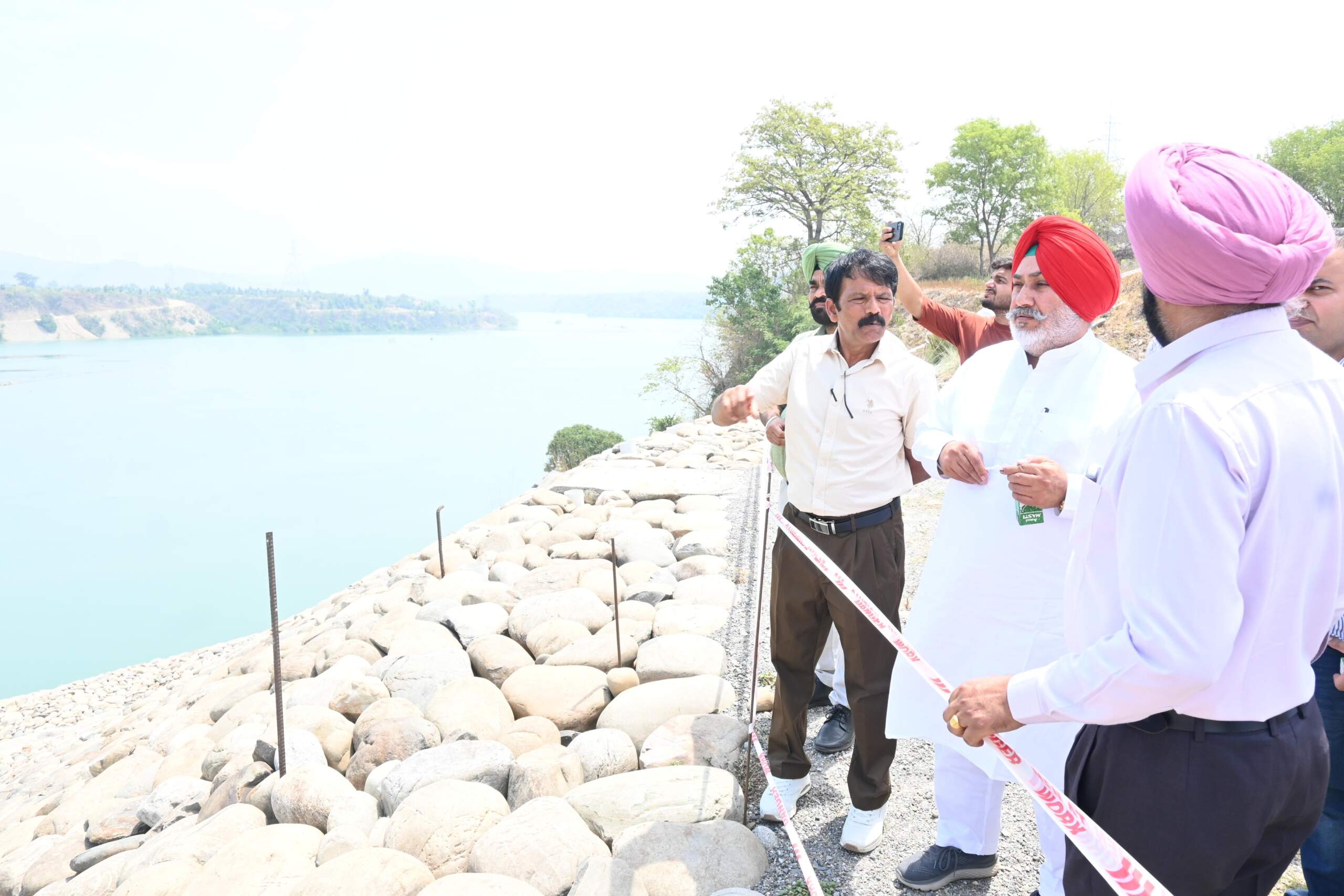 ਇਸ ਮੌਕੇ ਉਨ੍ਹਾਂ ਨਾਲ ਡੈਮਜ਼ ਪ੍ਰਸ਼ਾਸਨ ਦੇ ਚੀਫ਼ ਇੰਜੀਨੀਅਰ ਸ. ਸ਼ੇਰ ਸਿੰਘ, ਐਸ.ਈ. ਗੁਰਪਿੰਦਰ ਸਿੰਘ ਸੰਧੂ, ਐਕਸੀਅਨ ਅਰਵਿੰਦ ਕੁਮਾਰ, ਐਕਸੀਅਨ ਹੈੱਡਕੁਆਰਟਰ ਲਖਵਿੰਦਰ ਸਿੰਘ, ਓਮੀਤ ਜੇਵੀ ਕੰਪਨੀ ਦੇ ਜਨਰਲ ਮੈਨੇਜਰ ਆਰ.ਐਸ. ਰੇਅ, ਐਚ.ਆਰ. ਸ੍ਰੀਹੰਸ ਸੇਠੀ ਅਤੇ ਹੋਰ ਅਧਿਕਾਰੀ ਹਾਜ਼ਰ ਸਨ। ਕੈਬਨਿਟ ਮੰਤਰੀ ਨੇ ਸਭ ਤੋਂ ਪਹਿਲਾਂ ਸ਼ਾਹਪੁਰ ਕੰਢੀ ਬੈਰਾਜ ’ਤੇ ਬਣ ਰਹੇ ਪੁਲ ਅਤੇ ਝੀਲ ਦਾ ਨਿਰੀਖਣ ਕੀਤਾ। ਡੈਮਜ਼ ਪ੍ਰਸ਼ਾਸਨ ਦੇ ਮੁੱਖ ਇੰਜੀਨੀਅਰ ਨੇ ਦੱਸਿਆ ਕਿ ਪ੍ਰਸ਼ਾਸਨ ਨੇ ਅਕਤੂਬਰ ਮਹੀਨੇ ਤੋਂ ਬੈਰਾਜ ਡੈਮ ਦੀ ਝੀਲ ਵਿੱਚ ਪਾਣੀ ਭਰਨ ਦਾ ਕੰਮ ਸ਼ੁਰੂ ਕੀਤਾ ਹੋਇਆ ਹੈ। ਇਸ ਦੇ ਨਾਲ ਹੀ ਰਣਜੀਤ ਸਾਗਰ ਡੈਮ ਪ੍ਰਾਜੈਕਟ ਤੋਂ ਬਿਜਲੀ ਉਤਪਾਦਨ ਵਧਾ ਕੇ ਨੀਵੇਂ ਇਲਾਕਿਆਂ ਵਿੱਚ ਸਿੰਚਾਈ ਲਈ ਪਾਣੀ ਦੀ ਨਿਰੰਤਰ ਸਪਲਾਈ ਦਿੱਤੀ ਜਾ ਰਹੀ ਹੈ। ਅਧਿਕਾਰੀਆਂ ਨੇ ਦੱਸਿਆ ਕਿ ਇਹ ਪ੍ਰਾਜੈਕਟ 1999 ਵਿੱਚ ਸ਼ੁਰੂ ਕੀਤਾ ਗਿਆ ਸੀ ਅਤੇ ਕਈ ਕਾਰਨਾਂ ਕਰਕੇ ਅੱਗੇ ਨਹੀਂ ਵਧ ਸਕਿਆ। ਉਨ੍ਹਾਂ ਦੱਸਿਆ ਕਿ ਇਸ ਪ੍ਰਾਜੈਕਟ ਦਾ ਕਰੀਬ 65 ਫ਼ੀਸਦੀ ਕੰਮ ਪਿਛਲੇ ਦੋ ਸਾਲਾਂ ਵਿੱਚ ਹੀ ਮੁਕੰਮਲ ਹੋਇਆ ਹੈ।