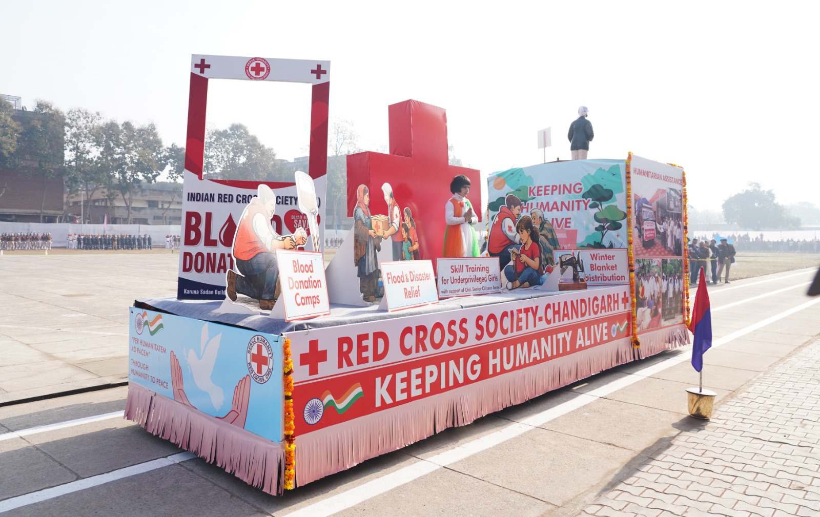 ਇੰਡੀਅਨ ਰੈੱਡ ਕਰਾਸ ਸੋਸਾਇਟੀ ਦੀ ਝਾਕੀ ਨੇ “ਮਨੁੱਖਤਾ ਨੂੰ ਜ਼ਿੰਦਾ ਰੱਖਣਾ” ਥੀਮ ਪੇਸ਼ ਕੀਤਾ, ਜਦੋਂ ਕਿ ਚੰਡੀਗੜ੍ਹ ਪ੍ਰਦੂਸ਼ਣ ਕੰਟਰੋਲ ਕਮੇਟੀ ਨੇ “ਚੰਡੀਗੜ੍ਹ – ਸਾਫ਼ ਹਵਾ ਨਾਲ ਟਿਕਾਊ ਵਿਕਾਸ ਵੱਲ” ਪੇਸ਼ ਕੀਤਾ।