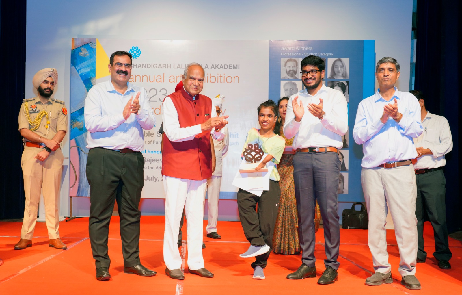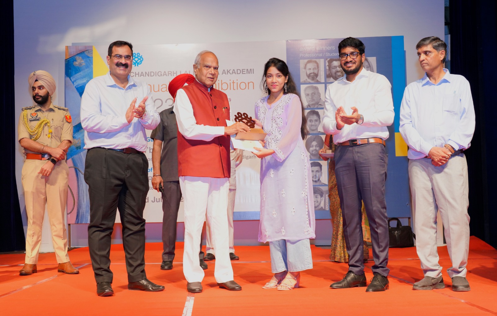 ਚੰਡੀਗੜ੍ਹ, 22 ਜੁਲਾਈ, 2024 ਚੰਡੀਗੜ੍ਹ ਲਲਿਤ ਕਲਾ ਅਕਾਦਮੀ ਨੇ ਆਪਣਾ ਸਲਾਨਾ ਪੁਰਸਕਾਰ ਸਮਾਰੋਹ ਪੰਜਾਬ ਕਲਾ ਭਵਨ, ਚੰਡੀਗੜ੍ਹ ਵਿਖੇ ਬੜੇ ਉਤਸ਼ਾਹ ਅਤੇ ਸਨਮਾਨ ਨਾਲ ਮਨਾਇਆ। ਬਨਵਾਰੀਲਾਲ ਪੁਰੋਹਿਤ, ਪੰਜਾਬ ਦੇ ਰਾਜਪਾਲ ਅਤੇ ਯੂਟੀ ਚੰਡੀਗੜ੍ਹ ਦੇ ਪ੍ਰਸ਼ਾਸਕ ਮੁੱਖ ਮਹਿਮਾਨ ਵਜੋਂ ਸ਼ਾਮਲ ਹੋਏ, ਜਿਨ੍ਹਾਂ ਨੇ ਪੁਰਸਕਾਰ ਜੇਤੂ ਕਲਾਕਾਰਾਂ ਨੂੰ ਸਨਮਾਨਿਤ ਕੀਤਾ। ਰਾਜੀਵ ਵਰਮਾ, ਪ੍ਰਸ਼ਾਸਕ ਦੇ ਸਲਾਹਕਾਰ ਨੇ ਮਹਿਮਾਨ ਵਜੋਂ ਸ਼ਿਰਕਤ ਕੀਤੀ