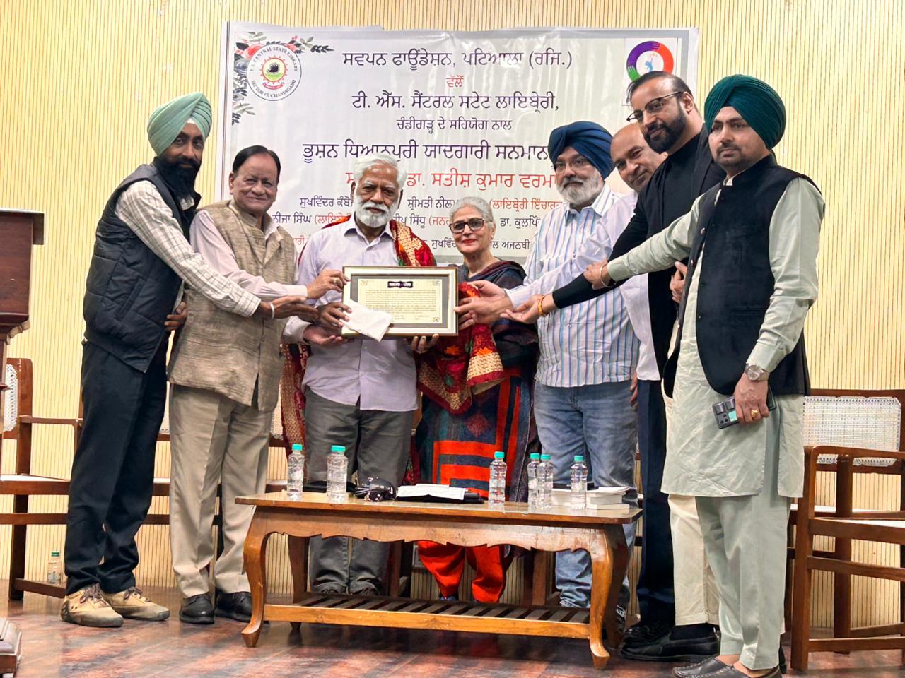 ਸਵਪਨ ਫਾਉਂਡੇਸ਼ਨ, ਪਟਿਆਲਾ (ਰਜਿ.) ਵੱਲੋਂ ਟੀ. ਐੱਸ. ਸੈਂਟਰਲ ਸਟੇਟ ਲਾਇਬ੍ਰੇਰੀ ਦੇ ਸਹਿਯੋਗ ਨਾਲ ਤੀਜਾ ਭੂਸ਼ਨ ਧਿਆਨਪੁਰੀ ਯਾਦਗਾਰੀ, ਵਾਰਤਕ ਸਨਮਾਨ ਉੱਘੇ ਲੇਖਕ ਡਾ. ਸਤੀਸ਼ ਕੁਮਾਰ ਵਰਮਾ ਜੀ ਨੂੰ ਦਿੱਤਾ ਗਿਆ।