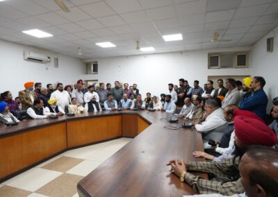 ਮੀਟਿੰਗ ਤੋਂ ਬਾਅਦ ਅਮਨ ਅਰੋੜਾ ਨੇ ਪੱਤਰਕਾਰਾਂ ਨੂੰ ਦੱਸਿਆ ਕਿ ਅੱਜ ਨਗਰ ਨਿਗਮਾਂ ਸਬੰਧੀ ਵਿਸਥਾਰਪੂਰਵਕ ਚਰਚਾ ਹੋਈ। ਕੱਲ੍ਹ ਨਗਰ ਕੌਂਸਲਾਂ, ਪੰਚਾਇਤਾਂ ਅਤੇ ਕਮੇਟੀਆਂ ਸਬੰਧੀ ਸਬੰਧਤ ਖੇਤਰ ਦੇ ਪਾਰਟੀ ਆਗੂਆਂ ਨਾਲ ਮੀਟਿੰਗ ਹੋਵੇਗੀ। ਸੂਬੇ ਦੀਆਂ 42 ਨਗਰ ਕੌਂਸਲਾਂ ਅਤੇ ਕਮੇਟੀਆਂ ਲਈ ਵੀ ਚੋਣਾਂ ਹੋਣੀਆਂ ਹਨ। ਸਾਰੀਆਂ ਕਮੇਟੀਆਂ ਸਾਡੇ ਲਈ ਮਹੱਤਵਪੂਰਨ ਹਨ ਅਤੇ ਸਾਡਾ ਉਨ੍ਹਾਂ ‘ਤੇ ਬਰਾਬਰ ਧਿਆਨ ਹੈ।