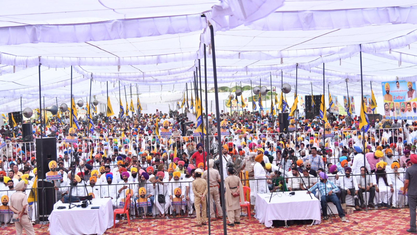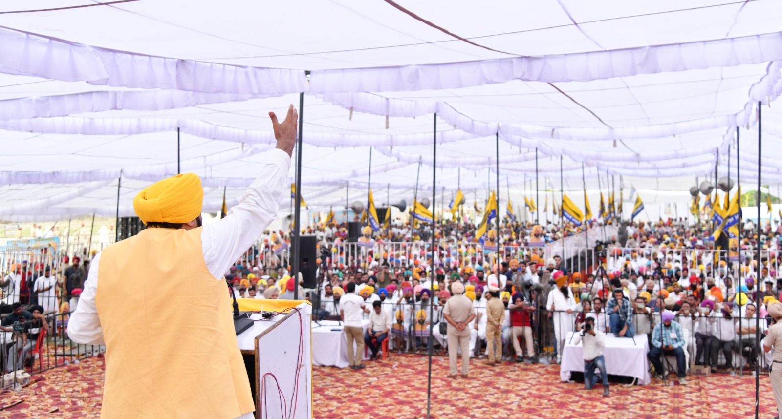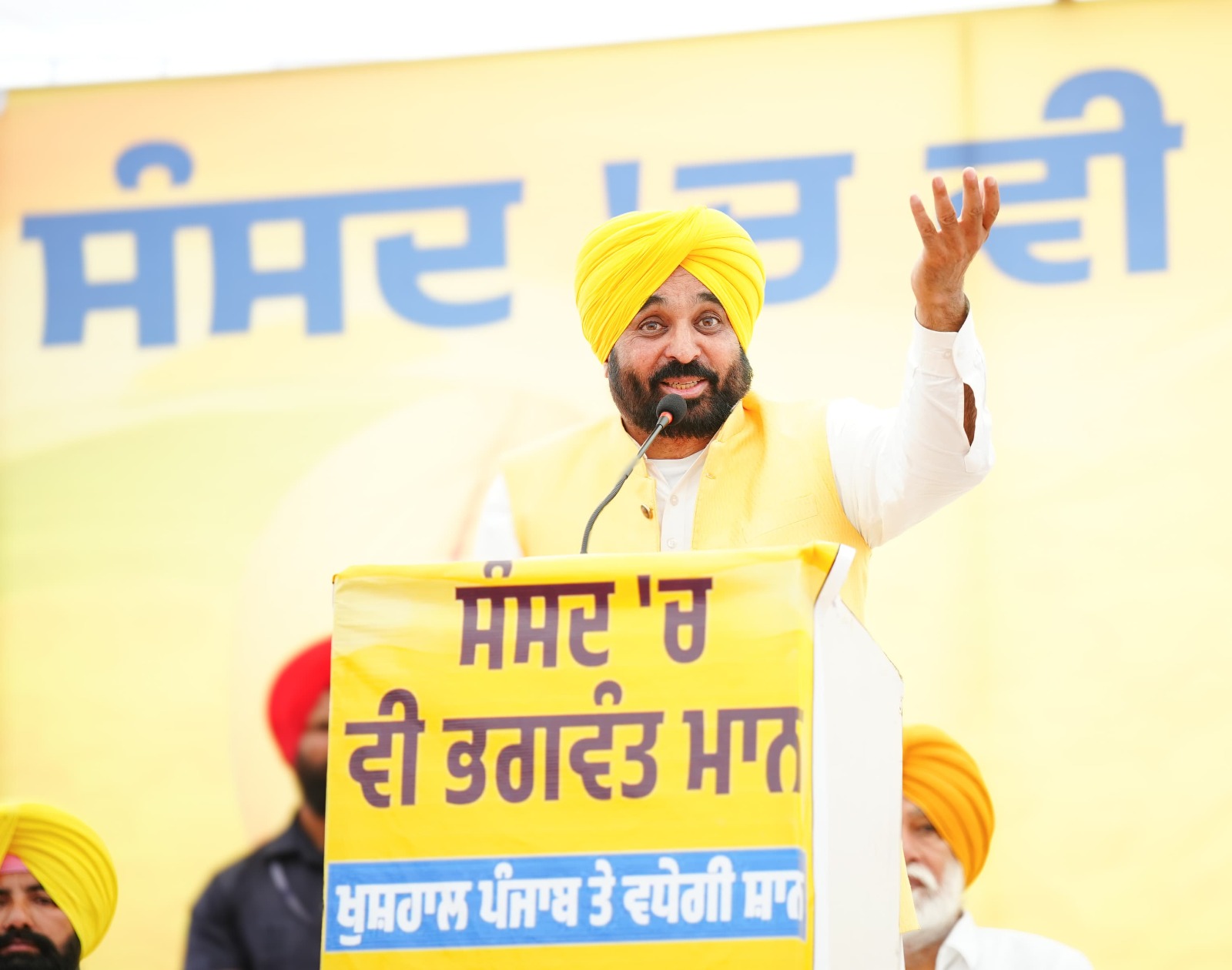 ਉਨ੍ਹਾਂ ਕਿਹਾ ਕਿ ਸਾਡਾ ਇਤਿਹਾਸ ਅਤੇ ਸੱਭਿਆਚਾਰ ਬਹੁਤ ਅਮੀਰ ਹੈ। ਭਗਤ ਸਿੰਘ ਨੇ 23 ਸਾਲ ਦੀ ਛੋਟੀ ਉਮਰ ਵਿੱਚ ਦੇਸ਼ ਲਈ ਆਪਣੀ ਜਾਨ ਕੁਰਬਾਨ ਕਰ ਦਿੱਤੀ ਸੀ। ਅੱਜ ਭਾਜਪਾ ਭਗਤ ਸਿੰਘ, ਰਾਜਗੁਰੂ, ਸੁਖਦੇਵ, ਮਦਨ ਲਾਲ ਢੀਂਗਰਾ ਅਤੇ ਲਾਲਾ ਲਾਜਪਤ ਰਾਏ ਦੀ ਝਾਂਕੀ ਨੂੰ ਰੱਦ ਕਰ ਰਹੇ ਹਨ। ਸਾਡੇ ਸ਼ਹੀਦਾਂ ਅਤੇ ਉਨ੍ਹਾਂ ਦੀਆਂ ਕੁਰਬਾਨੀਆਂ ਨੂੰ ਨਕਾਰਨ ਵਾਲੇ ਕੌਣ ਹੁੰਦੇ ਹਨ? ਉਹ ਭੁੱਲ ਗਏ ਕਿ ਆਜ਼ਾਦੀ ਲਈ ਕਿਸ ਨੇ ਲੜਾਈ ਲੜੀ ਸੀ, ਜਿਸ ਦੀ ਬਦੌਲਤ ਅੱਜ ਉਨ੍ਹਾਂ ਨੂੰ ਪ੍ਰਧਾਨ ਮੰਤਰੀ ਦਾ ਅਹੁਦਾ ਮਿਲਿਆ ਹੈ। ਉਨ੍ਹਾਂ ਕਿਹਾ ਕਿ ਜਦੋਂ ਪੰਜਾਬ ਲਈ ਆਵਾਜ਼ ਉਠਾਉਣ ਦਾ ਸਮਾਂ ਆਉਂਦਾ ਹੈ ਤਾਂ ਕੈਪਟਨ, ਜਾਖੜ ਅਤੇ ਮਨਪ੍ਰੀਤ ਬਾਦਲ ਕਿੱਥੇ ਚਲੇ ਜਾਂਦੇ ਹਨ? ਉਨ੍ਹਾਂ ਕਿਹਾ ਕਿ ਕੈਪਟਨ ਦੀ ਗਲਤੀ ਕਾਰਨ ਅੱਜ ਕੇਂਦਰ ਪੰਜਾਬ ਦੇ ਪੇਂਡੂ ਵਿਕਾਸ ਫੰਡ ਦੇ 5500 ਕਰੋੜ ਰੁਪਏ ਰੋਕ ਰਿਹਾ ਹੈ। ਉਨ੍ਹਾਂ ਕਿਹਾ ਕਿ ਹੁਣ ਪੰਜਾਬ ਦੇਸ਼ ਨੂੰ 130 ਲੱਖ ਮੀਟ੍ਰਿਕ ਟਨ ਕਣਕ ਦੇਵੇਗਾ, ਅਸੀਂ ਦੇਸ਼ ਨੂੰ 190 ਲੱਖ ਮੀਟ੍ਰਿਕ ਟਨ ਚੌਲ (ਚਾਵਲ) ਦਿੰਦੇ ਹਾਂ, ਪਰ ਜਦੋਂ ਸਾਡੇ ਕਿਸਾਨ ਆਪਣੇ ਹੱਕ ਮੰਗਦੇ ਹਨ ਤਾਂ ਉਨ੍ਹਾਂ (ਭਾਜਪਾ) ਨੇ ਕੰਡਿਆਲੀ ਤਾਰ ਲਾ ਦਿੱਤੀ, ਅੱਗ ਲਗਾਈ ਅਤੇ ਅੱਥਰੂ ਗੈਸ ਛੱਡੇ। ਉਨ੍ਹਾਂ ਲੋਕਾਂ ਨੂੰ ਕਿਹਾ ਕਿ ਉਨ੍ਹਾਂ ਨੂੰ ਹੋਰ ਤਾਕਤ ਦਿਓ, ਉਨ੍ਹਾਂ ਨੂੰ 13 ਹੱਥ ਅਤੇ ਆਵਾਜ਼ ਦਿਓ ਜੋ ਤੁਹਾਡੇ ਮੁੱਦੇ ਸੰਸਦ ਵਿੱਚ ਉਠਾਉਣਗੇ। ਫਿਰ ਮੈਂ ਤੁਹਾਡੀਆਂ ਸਾਰੀਆਂ ਉਮੀਦਾਂ ਨੂੰ ਪੂਰਾ ਕਰਨ ਲਈ ਹੋਰ ਵੀ ਸਖ਼ਤ ਮਿਹਨਤ ਕਰਾਂਗਾ। ਭਗਵੰਤ ਮਾਨ ਨੇ ਕਿਹਾ ਕਿ ਉਹ ਪਾਰਲੀਮੈਂਟ ਵਿਚ ਇਕੱਲੇ ਹੁੰਦੇ ਸਨ, ਪਰ ਪੰਜਾਬ ਅਤੇ ਪੰਜਾਬੀਆਂ ਲਈ ਸਾਰਿਆਂ ਨਾਲ ਭਿੜ ਜਾਂਦੇ ਸਨ। ਹੁਣ ਤੁਹਾਡੀਆਂ ਸਮੱਸਿਆਵਾਂ ਦੇ ਹੱਲ ਅਤੇ ਤੁਹਾਡੇ ਅਧਿਕਾਰਾਂ ਦੀ ਰਾਖੀ ਲਈ ਸਾਡੇ ਦੇਸ਼ ਦੀ ਸਭ ਤੋਂ ਵੱਡੀ ਪੰਚਾਇਤ ਵਿਚ 13 ਲੋਕ-ਪੱਖੀ ਆਵਾਜ਼ਾਂ ਭੇਜੋ। ਉਨ੍ਹਾਂ ਕਿਹਾ ਕਿ ਰਿਪੋਰਟਾਂ ਮੁਤਾਬਿਕ ਭਾਰਤ ਗੱਠਜੋੜ ਦੀ ਸਰਕਾਰ ਬਣ ਰਹੀ ਹੈ। ਭਾਜਪਾ ਬੁਰੀ ਤਰ੍ਹਾਂ ਹਾਰ ਰਹੀ ਹੈ, ਅਸੀ ਭਾਰਤ ਸਰਕਾਰ ਵਿੱਚ ਭਾਈਵਾਲ ਰਹਾਂਗੇ, ਫਿਰ ਕੋਈ ਸਾਡੇ ਫੰਡ ਨਹੀਂ ਰੋਕ ਸਕੇਗਾ।