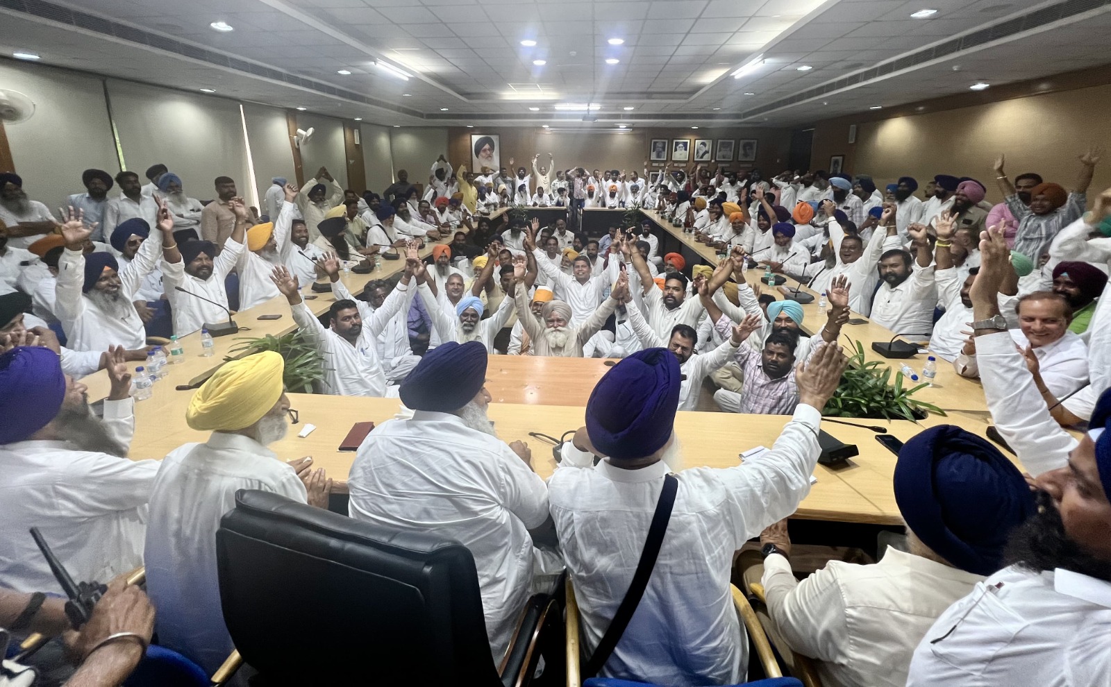 ਚੰਡੀਗੜ੍ਹ, 1 ਜੁਲਾਈ: ਪਾਰਟੀ ਦੇ ਸਮੁੱਚੇ ਐਸ.ਸੀ ਵਿੰਗ ਨੇ ਅੱਜ ਸ਼੍ਰੋਮਣੀ ਅਕਾਲੀ ਦਲ ਦੇ ਪ੍ਰਧਾਨ ਸੁਖਬੀਰ ਸਿੰਘ ਬਾਦਲ ਦੇ ਪਿੱਛੇ ਰੈਲੀ ਕੀਤੀ ਜਦਕਿ ਵਿੰਗ ਦੇ ਆਗੂਆਂ ਨੇ ਐਲਾਨ ਕੀਤਾ ਕਿ ਇਕ ਵੀ ਐਸਸੀ ਆਗੂ ਬਾਗੀਆਂ ਨਾਲ ਨਹੀਂ ਹੈ ਅਤੇ ਸਾਰਾ ਦਰਜਾ ਸੁਖਬੀਰ ਸਿੰਘ ਬਾਦਲ ਦੇ ਨਾਲ ਹੈ।