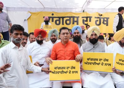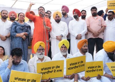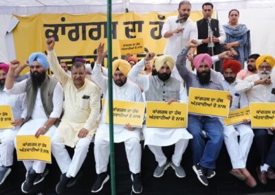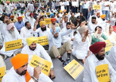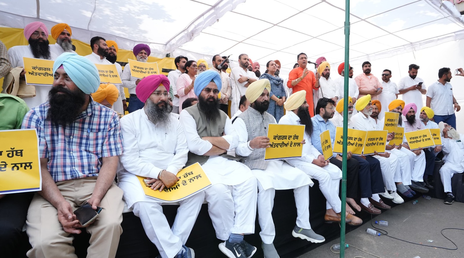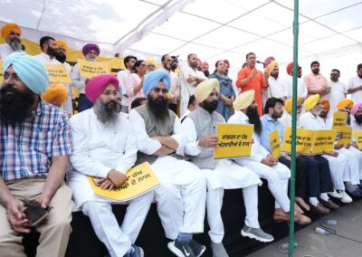 ਪ੍ਰਦਰਸ਼ਨ ਦੌਰਾਨ ਵਿਧਾਇਕ ਜਸਵੰਤ ਸਿੰਘ ਗੱਜਣਮਾਜਰਾ, ਕੁਲਵੰਤ ਸਿੰਘ, ‘ਆਪ’ ਪੰਜਾਬ ਦੇ ਜਨਰਲ ਸਕੱਤਰ ਜਗਰੂਪ ਸਿੰਘ ਸੇਖਵਾਂ, ਚੇਅਰਮੈਨ ਹਰਚੰਦ ਸਿੰਘ ਬਰਸਟ, ‘ਆਪ’ ਆਗੂ ਰਣਜੋਤ ਹਡਾਨਾ, ਅਮਨਦੀਪ ਸਿੰਘ ਮੋਹੀ, ਨੀਲ ਗਰਗ, ਗੋਵਿੰਦਰ ਮਿੱਤਲ, ਵਿਨੀਤ ਵਰਮਾ, ਪਰਮਿੰਦਰ ਗੋਲਡੀ, ਪ੍ਰਭਜੋਤ ਕੌਰ, ਕਰਮਜੀਤ ਕੌਰ, ਵਿੱਕੀ ਘਨੌਰ ਅਤੇ ਸੈਂਕੜੇ ‘ਆਪ’ ਵਲੰਟੀਅਰ ਮੌਜੂਦ ਸਨ।