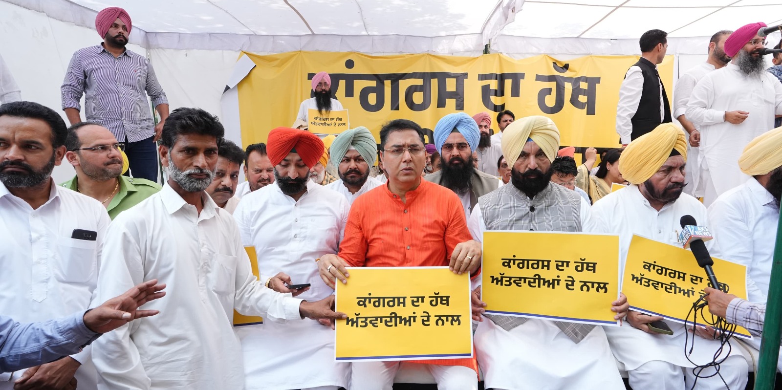 ‘ਆਪ’ ਵਰਕਰਾਂ ਨੇ “ਕਾਂਗਰਸ ਦਾ ਹੱਥ ਅੱਤਵਾਦੀਆਂ ਦੇ ਨਾਲ” ਨਾਂ ਦੀ ਤਖ਼ਤਿਆਂ ਫੜ ਕੇ ਬਾਜਵਾ ਵਿਰੁੱਧ ਖੋਲ੍ਹਿਆ ਮੋਰਚਾ