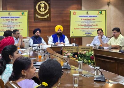 ਕੈਬਨਿਟ ਮੰਤਰੀ ਹਰਜੋਤ ਸਿੰਘ ਬੈਂਸ ਵਲੋਂ ਮੈਂਬਰ ਰਾਜ ਸਭਾ ਡਾ. ਵਿਕਰਮ ਜੀਤ ਸਿੰਘ ਸਾਹਨੀ ਨਾਲ ਪੰਜਾਬ ਰਾਜ ਦੀਆਂ ਛੇ ਤਕਨੀਕੀ ਸਿੱਖਿਆ ਸੰਸਥਾਵਾਂ ਨੂੰ ਅਪਨਾਉਣ ਸਬੰਧੀ ਐਮ.ਉ.ਯੂ. ਸਾਈਨ
