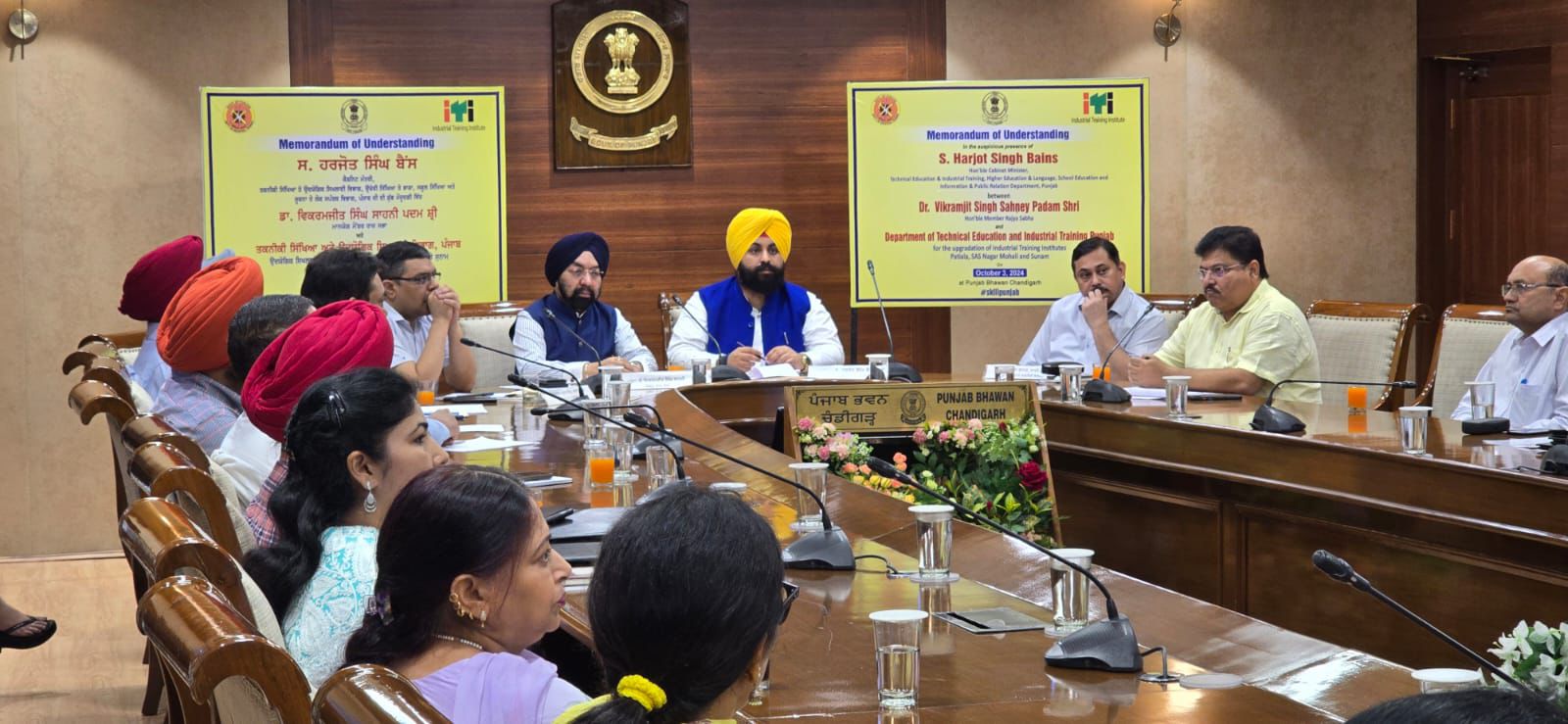 ਪੰਜਾਬ ਦੇ ਤਕਨੀਕੀ ਸਿੱਖਿਆ ਮੰਤਰੀ ਹਰਜੋਤ ਸਿੰਘ ਬੈਂਸ ਦੇ ਉਪਰਾਲੇ ਨਾਲ ਸੂਬੇ ਦੀਆਂ ਛੇ ਆਈ.ਟੀ.ਆਈਜ. ਨੂੰ ਰਾਜ ਸਭਾ ਮੈਂਬਰ ਵਿਕਰਮ ਜੀਤ ਸਿੰਘ ਸਾਹਨੀ ਵਲੋਂ ਅਪਨਾਉਣ ਸਬੰਧੀ ਅੱਜ ਐਮ.ਉ.ਯੂ. ਸਾਈਨ ਕੀਤਾ ਗਿਆ।