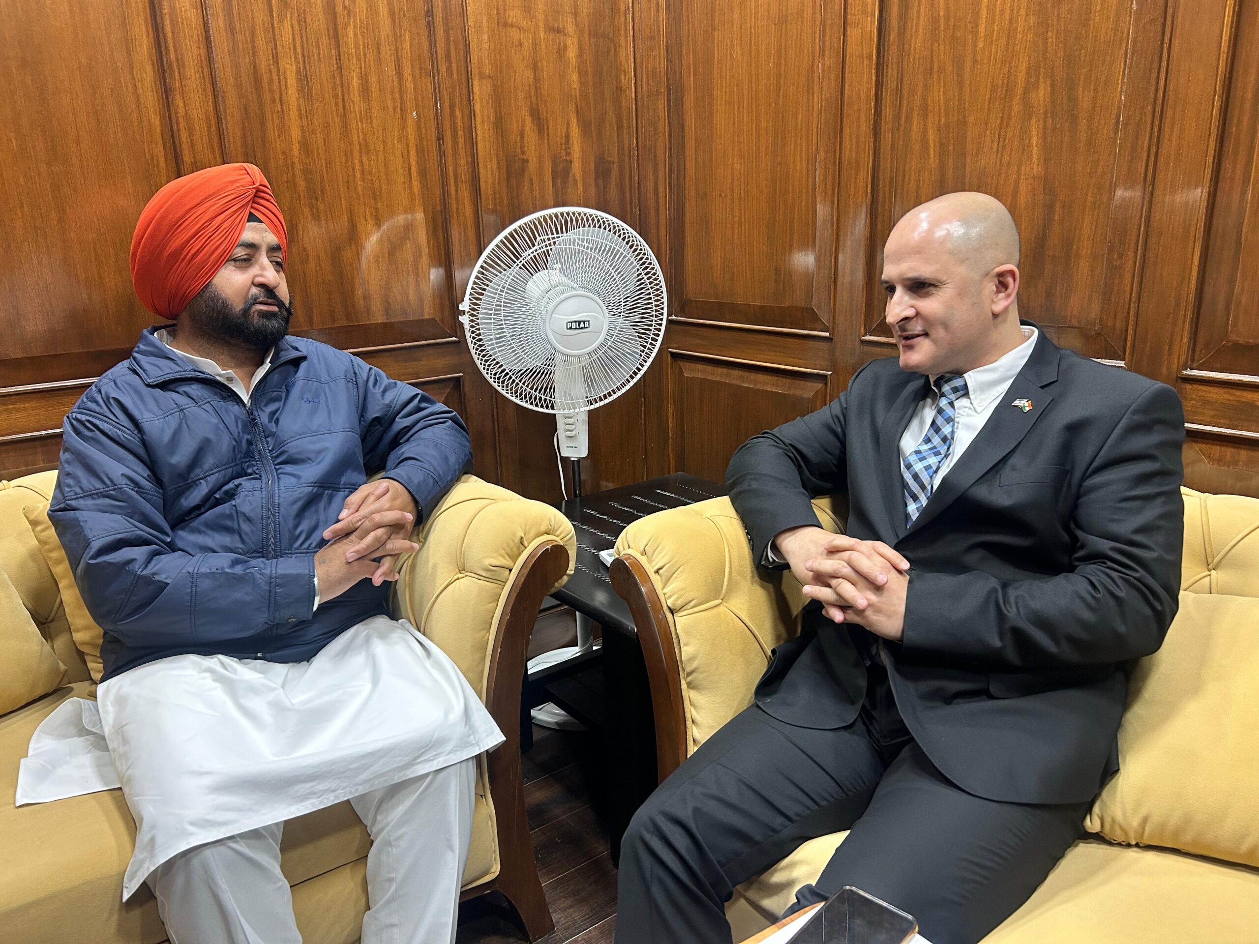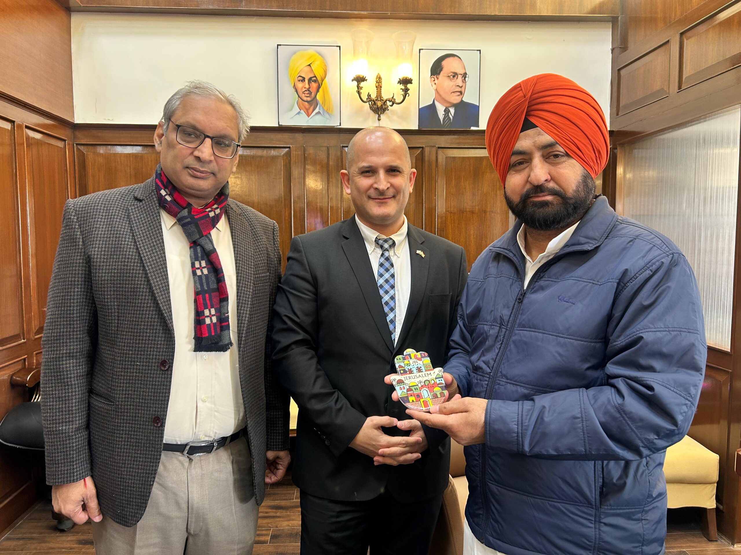 ਪੰਜਾਬ ਦੇ ਮਕਾਨ ਉਸਾਰੀ ਅਤੇ ਸ਼ਹਿਰੀ ਵਿਕਾਸ ਮੰਤਰੀ ਸ. ਹਰਦੀਪ ਸਿੰਘ ਮੁੰਡੀਆਂ ਨੇ ਅੱਜ ਇਥੇ ਪੰਜਾਬ ਸਿਵਲ ਸਕੱਤਰੇਤ ਸਥਿਤ ਆਪਣੇ ਦਫ਼ਤਰ ਵਿਖੇ ਇਜ਼ਰਾਈਲ ਦੇ ਮੰਤਰੀ ਅਤੇ ਇਜ਼ਰਾਇਲੀ ਦੂਤਾਵਾਸ ਵਿਖੇ ਮਿਸ਼ਨ ਡਿਪਟੀ ਹੈੱਡ ਸ੍ਰੀ ਫਾਰੇਸ ਸਾਏਬ ਨਾਲ ਮੁਲਾਕਾਤ ਕੀਤੀ।