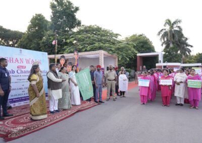 ਰਾਜ-ਪੱਧਰੀ ਪੋਸ਼ਨ ਕਾ ਮੇਲਾ, ਜਸ਼ਨ ਦੇ ਹਿੱਸੇ ਵਜੋਂ ਆਯੋਜਿਤ ਕੀਤਾ ਗਿਆ, ਜਨਤਕ ਜਾਗਰੂਕਤਾ ਵਧਾਉਣ ਅਤੇ ਕਮਿਊਨਿਟੀ-ਪੱਧਰ ਦੇ ਦਖਲਅੰਦਾਜ਼ੀ ਨੂੰ ਮਜ਼ਬੂਤ ਕਰਨ ‘ਤੇ ਕੇਂਦ੍ਰਿਤ ਹੈ। ਸਮਾਗਮ ਦੀ ਸ਼ੁਰੂਆਤ ਪੋਸ਼ਣ ‘ਤੇ ਇੱਕ ਵਿਸ਼ੇਸ਼ ਵਾਕਾਥੌਨ ਨਾਲ ਹੋਈ, ਜਿਸ ਨੂੰ ਮਾਨਯੋਗ ਰਾਜਪਾਲ ਦੁਆਰਾ ਅਧਿਕਾਰਤ ਤੌਰ ‘ਤੇ ਹਰੀ ਝੰਡੀ ਦਿਖਾ ਕੇ ਰਵਾਨਾ ਕੀਤਾ ਗਿਆ। ਲਗਭਗ 100 ਆਂਗਣਵਾੜੀ ਵਰਕਰਾਂ ਨੇ ਭਾਗ ਲਿਆ, ਜਿਨ੍ਹਾਂ ਨੇ ਜ਼ਰੂਰੀ ਪੋਸ਼ਣ ਸੰਬੰਧੀ ਸੰਦੇਸ਼ਾਂ ਦਾ ਪ੍ਰਚਾਰ ਕਰਦੇ ਹੋਏ ਪਲੇਕਾਰਡ ਅਤੇ ਬੈਨਰ ਫੜੇ ਹੋਏ ਸਨ, ਜੋ ਸਿਹਤਮੰਦ ਭਾਈਚਾਰਿਆਂ ਨੂੰ ਉਤਸ਼ਾਹਿਤ ਕਰਨ ਵਿੱਚ ਸਹੀ ਪੋਸ਼ਣ ਦੀ ਭੂਮਿਕਾ ‘ਤੇ ਜ਼ੋਰ ਦਿੰਦੇ ਸਨ।