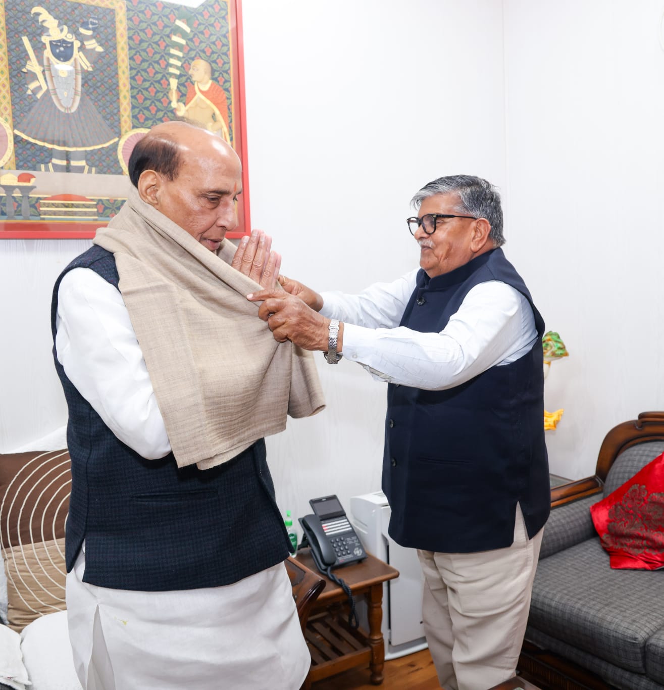 ਪੰਜਾਬ ਦੇ ਰਾਜਪਾਲ ਅਤੇ ਯੂਟੀ ਚੰਡੀਗੜ੍ਹ ਦੇ ਪ੍ਰਸ਼ਾਸਕ, ਸ਼੍ਰੀ ਗੁਲਾਬ ਚੰਦ ਕਟਾਰੀਆ ਨੇ ਅੱਜ ਨਵੀਂ ਦਿੱਲੀ ਵਿੱਚ ਭਾਰਤ ਦੇ ਕੇਂਦਰੀ ਰੱਖਿਆ ਮੰਤਰੀ, ਸ਼੍ਰੀ ਰਾਜਨਾਥ ਸਿੰਘ ਨਾਲ ਸ਼ਿਸ਼ਟਾਚਾਰ ਮੁਲਾਕਾਤ ਕੀਤੀ।