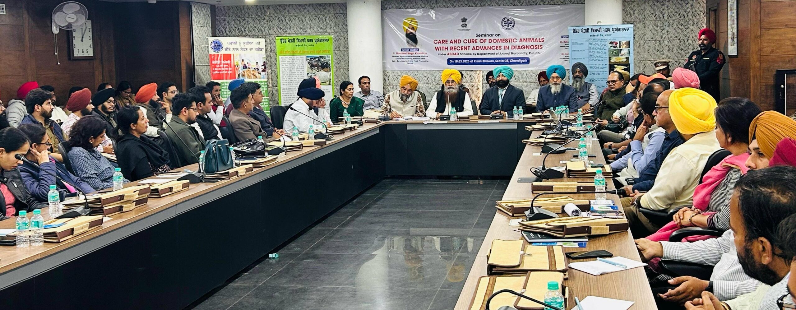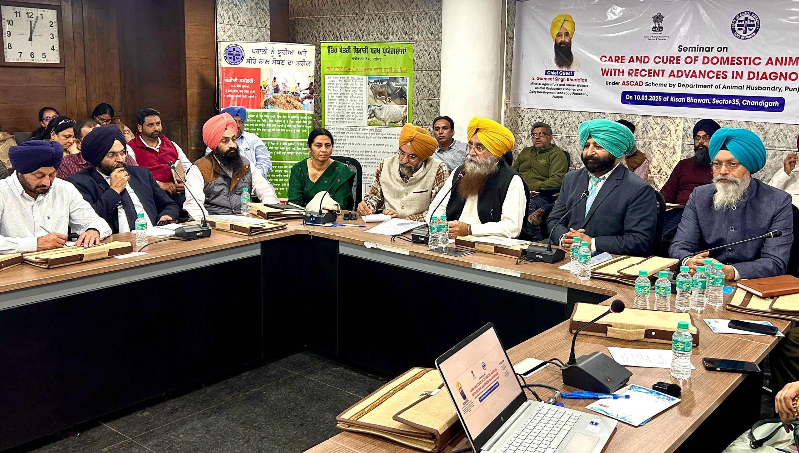 ਕੈਬਨਿਟ ਮੰਤਰੀ ਇੱਥੇ ਕਿਸਾਨ ਭਵਨ ਵਿਖੇ ਪਸ਼ੂ ਪਾਲਣ ਵਿਭਾਗ ਵੱਲੋਂ ਏ.ਐਸ.ਸੀ.ਏ.ਡੀ. ਸਕੀਮ ਅਧੀਨ “ਬਿਮਾਰੀਆਂ ਦੀ ਜਾਂਚ ਸਬੰਧੀ ਆਧੁਨਿਕ ਤਕਨੀਕਾਂ ਨਾਲ ਪਾਲਤੂ ਜਾਨਵਰਾਂ ਦੀ ਦੇਖਭਾਲ ਅਤੇ ਇਲਾਜ” ਵਿਸ਼ੇ ‘ਤੇ ਕਰਵਾਏ ਗਏ ਸੈਮੀਨਾਰ ਨੂੰ ਸੰਬੋਧਨ ਕਰ ਰਹੇ ਸਨ।