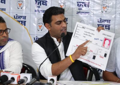 ਪੰਜਾਬ ਯੂਥ ਕਾਂਗਰਸ ਦੇ ਪ੍ਰਧਾਨ ਮੋਹਿਤ ਮੋਹਿੰਦਰਾ ਨੇ ਅੱਜ ਸੂਬੇ ਵਿੱਚ ਵੱਧ ਰਹੀ ਵੋਟ ਚੋਰੀ ਦਾ ਪਰਦਾਫਾਸ਼ ਕਰਨ ਅਤੇ ਇਸ ਧੋਖਾਧੜੀ ਨਾਲ ਲੜਨ ਲਈ ਸੂਬਾ ਪੱਧਰੀ ‘ਵੋਟਰ ਵੈਰੀਫਿਕੇਸ਼ਨ’ ਮੁਹਿੰਮ ਦਾ ਐਲਾਨ ਕੀਤਾ ਹੈ। ਇਹ ਐਲਾਨ ਚੰਡੀਗੜ੍ਹ ਦੇ ਕਾਂਗਰਸ ਭਵਨ ਵਿਖੇ ਪੰਜਾਬ ਯੂਥ ਕਾਂਗਰਸ ਦੇ ਇੰਚਾਰਜ ਡਾ. ਸਮ੍ਰਿਤੀ ਰੰਜਨ ਲਿਨਕਾ ਅਤੇ ਹੋਰ ਸੀਨੀਅਰ ਆਗੂਆਂ ਦੀ ਮੌਜੂਦਗੀ ਵਿੱਚ ਕੀਤਾ ਗਿਆ।