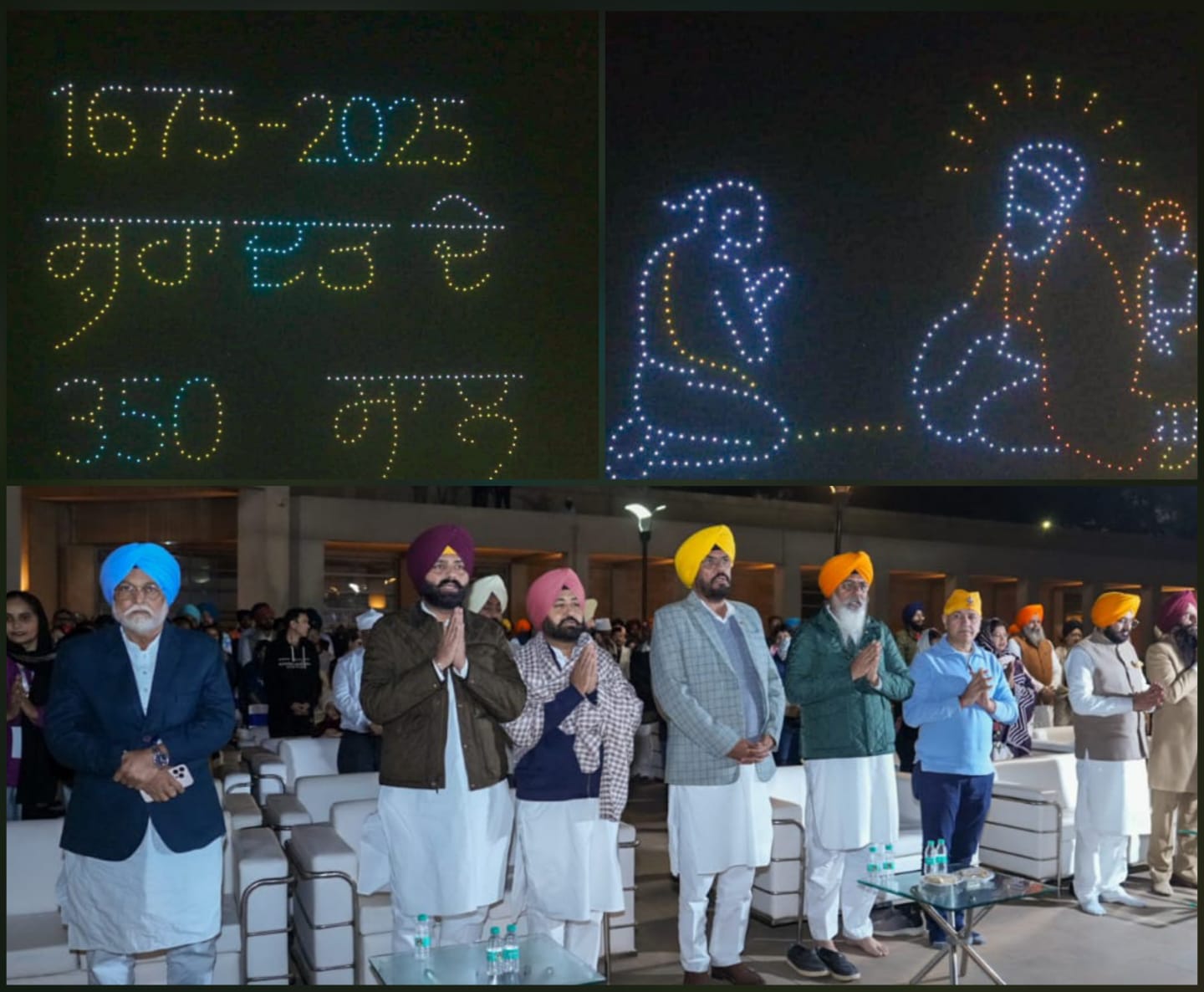 ਮੁੱਖ ਮੰਤਰੀ ਭਗਵੰਤ ਸਿੰਘ ਮਾਨ ਦੀ ਅਗਵਾਈ ਵਾਲੀ ਪੰਜਾਬ ਸਰਕਾਰ ਵੱਲੋਂ ਇਸ ਇਤਿਹਾਸਕ ਦਿਹਾੜੇ ਨੂੰ ਸਮਰਪਿਤ ਸਮਾਗਮਾਂ ਦੌਰਾਨ ਅਤਿ-ਆਧੁਨਿਕ ਤਕਨਾਲੋਜੀ ਦੀ ਵਰਤੋਂ ਕਰਦਿਆਂ ਇਹ ਯਕੀਨੀ ਬਣਾਇਆ ਜਾ ਰਿਹਾ ਹੈ ਕਿ ਨੌਜਵਾਨ ਪੀੜ੍ਹੀ ਅਤੇ ਪੂਰੀ ਦੁਨੀਆ ਨੂੰ ਨੌਵੇਂ ਗੁਰੂ ਸਾਹਿਬ ਅਤੇ ਉਨ੍ਹਾਂ ਦੇ ਪੈਰੋਕਾਰਾਂ ਦੇ ਜੀਵਨ, ਦਰਸ਼ਨ ਅਤੇ ਲਾਸਾਨੀ ਸ਼ਹਾਦਤ ਤੋਂ ਜਾਣੂ ਕਰਵਾਇਆ ਜਾਵੇ ਅਤੇ ਵਿਸ਼ਵ ਇਤਿਹਾਸ ਵਿੱਚ ਧਾਰਮਿਕ ਆਜ਼ਾਦੀ ਦੇ ਸਭ ਤੋਂ ਵੱਡੇ ਰਾਖਿਆਂ ਵਜੋਂ ਉਨ੍ਹਾਂ ਦੀ ਵਿਰਾਸਤ ਨੂੰ ਉਜਾਗਰ ਕੀਤਾ ਜਾਵੇ। ਇਹ ਵਿਲੱਖਣ ਡਰੋਨ ਸ਼ੋਅ ਗੁਰੂ ਸਾਹਿਬ ਦੇ ਸ਼ਹੀਦੀ ਦਿਹਾੜੇ ਨੂੰ ਸਮਰਪਿਤ ਸਮਾਗਮਾਂ ਦੇ ਮੁੱਖ ਆਕਰਸ਼ਨ ਵਿੱਚੋ ਇੱਕ ਹੈ ਅਤੇ ਇਹ ਪੰਜਾਬ ਸਰਕਾਰ ਦੀ ਸੂਬੇ ਦੀ ਅਮੀਰ ਅਧਿਆਤਮਿਕ ਅਤੇ ਸੱਭਿਆਚਾਰਕ ਵਿਰਾਸਤ ਨੂੰ ਸੰਭਾਲਣ ਅਤੇ ਵਿਸ਼ਵ ਭਰ ਤੱਕ ਪਹੁੰਚਣ ਪ੍ਰਤੀ ਦ੍ਰਿੜ ਵਚਨਬੱਧਤਾ ਦਾ ਪ੍ਰਤੱਖ ਪ੍ਰਮਾਣ ਹੈ।