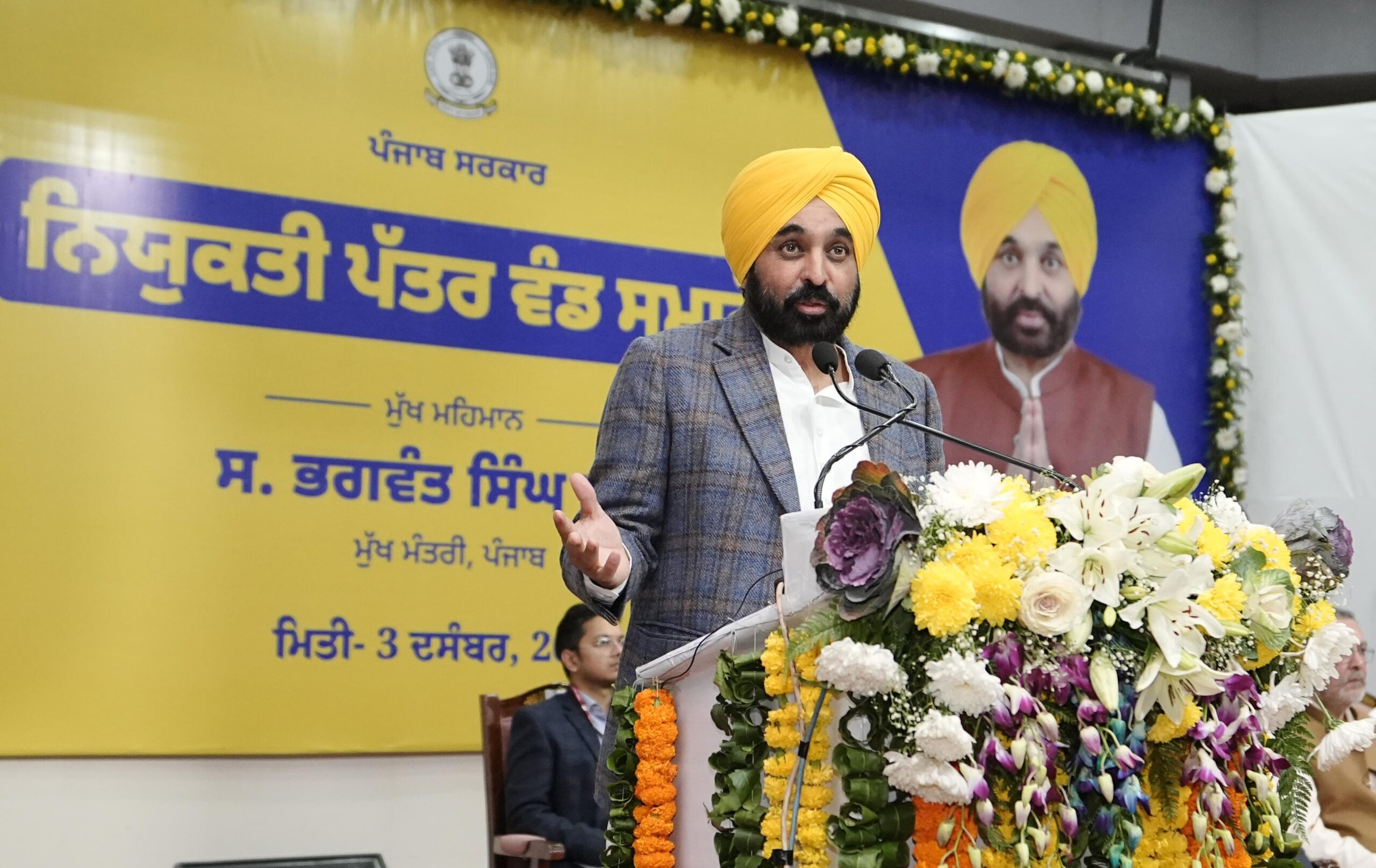 ਇੱਥੇ ਨੌਜਵਾਨਾਂ ਨੂੰ ਨਿਯੁਕਤੀ ਪੱਤਰ ਸੌਂਪਣ ਮੌਕੇ ਇਕੱਠ ਨੂੰ ਸੰਬੋਧਨ ਕਰਦਿਆਂ ਮੁੱਖ ਮੰਤਰੀ ਨੇ ਕਿਹਾ ਕਿ ਸੂਬਾ ਸਰਕਾਰ ਨੌਜਵਾਨਾਂ ਨੂੰ ਜੀਵਨ ਵਿੱਚ ਸਫ਼ਲ ਹੋਣ ਦੇ ਭਰਪੂਰ ਮੌਕੇ ਮੁਹੱਈਆ ਕਰਨ ਲਈ ਵਚਨਬੱਧ ਹੈ ਅਤੇ ਹੁਣ ਤੱਕ 50,000 ਦੇ ਕਰੀਬ ਸਰਕਾਰੀ ਨੌਕਰੀਆਂ ਦਿੱਤੀਆਂ ਜਾ ਚੁੱਕੀਆਂ ਹਨ। ਉਨ੍ਹਾਂ ਕਿਹਾ ਕਿ ਨੌਜਵਾਨਾਂ ਲਈ ਹੋਰ ਨਵੇਂ ਰਾਹ ਖੋਲ੍ਹੇ ਜਾਣਗੇ ਤਾਂ ਜੋ ਇਹ ਯਕੀਨੀ ਬਣਾਇਆ ਜਾ ਸਕੇ ਕਿ ਉਹ ਸੂਬੇ ਦੇ ਸਮਾਜਿਕ-ਆਰਥਿਕ ਵਿਕਾਸ ਵਿੱਚ ਸਰਗਰਮ ਭਾਈਵਾਲ ਬਣ ਸਕਣ। ਭਗਵੰਤ ਸਿੰਘ ਮਾਨ ਨੇ ਕਿਹਾ ਕਿ ਨੌਜਵਾਨਾਂ ਨੂੰ ਨਵੀਆਂ ਨੌਕਰੀਆਂ ਪ੍ਰਦਾਨ ਕਰਨ ਦੇ ਨਾਲ-ਨਾਲ ਨੌਕਰੀਆਂ ਪ੍ਰਾਪਤ ਕਰਨ ਲਈ ਸੰਘਰਸ਼ ਕਰਦੇ ਹੋਏ ਓਵਰਏਜ ਹੋ ਚੁੱਕੇ ਨੌਜਵਾਨਾਂ ਨੂੰ ਅਡਜਸਟ ਕਰਨ ਦੀ ਸੰਭਾਵਨਾ ਵੀ ਤਲਾਸ਼ੀ ਜਾ ਰਹੀ ਹੈ।