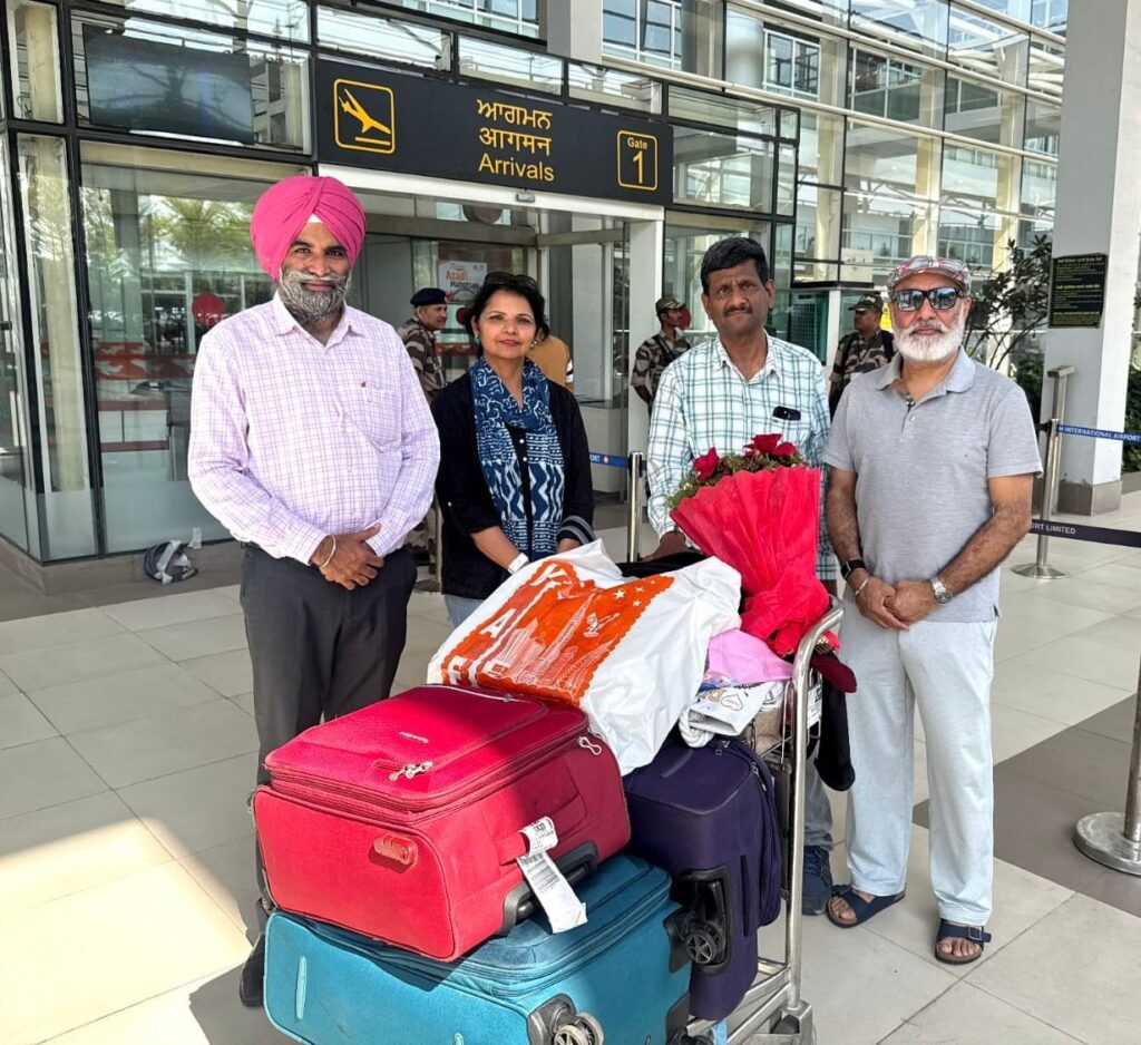 ਡਾ. ਸਨੀ ਸਿੰਘ ਆਹਲੂਵਾਲੀਆ ਅਤੇ ਐਨ.ਆਰ.ਆਈ ਮਾਮਲਿਆਂ ਦੀ ਵਿਸ਼ੇਸ਼ ਸਕੱਤਰ ਅਮਨਦੀਪ ਕੌਰ ਨੇ ਮੋਹਾਲੀ ਏਅਰਪੋਰਟ ’ਤੇ ਬਠਿੰਡਾ ਦੀ ਪ੍ਰਿੰਸੀਪਲ ਨੀਰੂ ਗਰਗ, ਉਨ੍ਹਾਂ ਦੇ ਪਰਿਵਾਰ ਅਤੇ ਹੋਰ ਵਾਪਸੀ ਕਰਨ ਵਾਲਿਆਂ ਦਾ ਕੀਤਾ ਸਵਾਗਤ