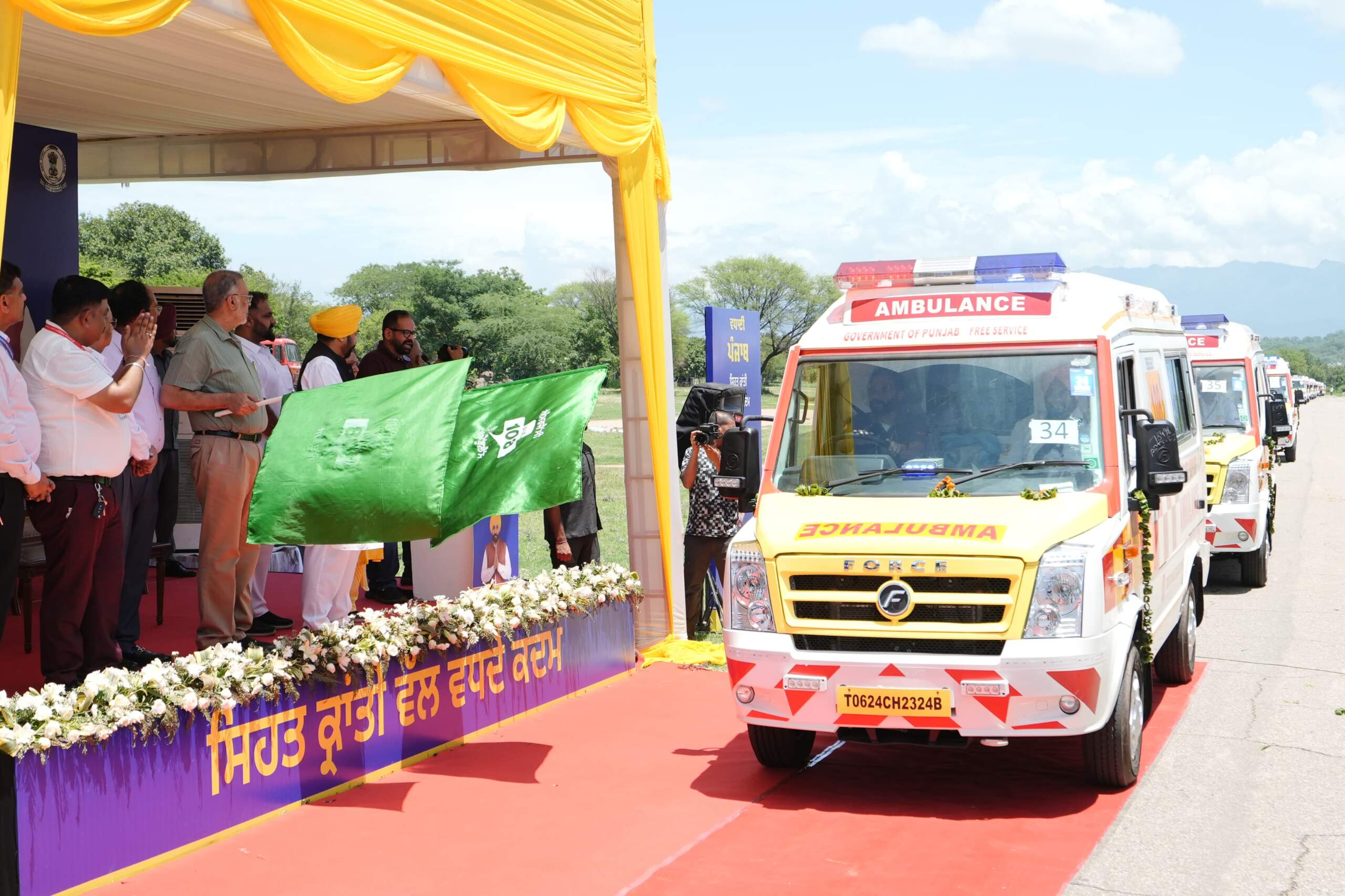 ਲੋਕਾਂ ਨੂੰ ਮਿਆਰੀ ਸਿਹਤ ਸੇਵਾਵਾਂ ਪ੍ਰਦਾਨ ਕਰਨ ਲਈ ਸੂਬਾ ਸਰਕਾਰ ਦੀ ਦ੍ਰਿੜ੍ਹ ਵਚਨਬੱਧਤਾ ਦੁਹਰਾਉਂਦਿਆਂ ਪੰਜਾਬ ਦੇ ਮੁੱਖ ਮੰਤਰੀ ਭਗਵੰਤ ਸਿੰਘ ਮਾਨ ਨੇ ਅੱਜ ਇੱਥੇ ਸੂਬੇ ਦੇ ਲੋਕਾਂ ਦੀ ਸਹੂਲਤ ਲਈ 58 ਨਵੀਆਂ ਹਾਈਟੈੱਕ ਐਂਬੂਲੈਂਸਾਂ ਨੂੰ ਹਰੀ ਝੰਡੀ ਦਿਖਾ ਕੇ ਰਵਾਨਾ ਕੀਤਾ।