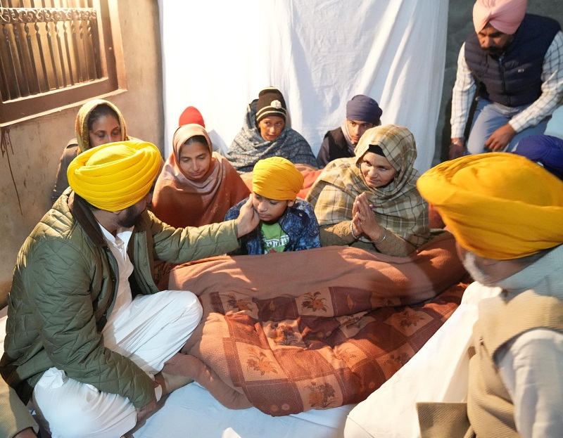 ਪੰਜਾਬ ਦੇ ਮੁੱਖ ਮੰਤਰੀ ਭਗਵੰਤ ਸਿੰਘ ਮਾਨ ਵੀਰਵਾਰ ਨੂੰ ਡਿਊਟੀ ਦੌਰਾਨ ਸ਼ਹੀਦ ਹੋਏ ਹੌਲਦਾਰ ਜਸਪਾਲ ਸਿੰਘ ਦੇ ਘਰ ਪੁੱਜੇ ਅਤੇ ਸ਼ਹੀਦ ਨੂੰ ਸ਼ਰਧਾਂਜਲੀ ਵਜੋਂ 1 ਕਰੋੜ ਰੁਪਏ ਦਾ ਚੈੱਕ ਉਨ੍ਹਾਂ ਦੇ ਪਰਿਵਾਰ ਨੂੰ ਸੌਂਪਿਆ।