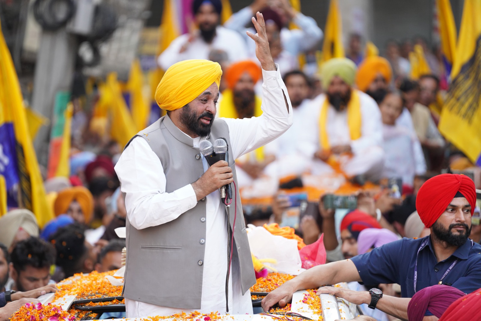 ਫੁੱਲਾਂ ਦੀ ਵਰਖਾ ਵਿਚ ਅੱਖ ਜ਼ਖ਼ਮੀ ਹੋਣ ਤੋਂ ਬਾਅਦ ਭਗਵੰਤ ਮਾਨ ਨੇ ਲੋਕਾਂ ਨੂੰ ਕਿਹਾ- ਮੇਰੀ ਫ਼ਿਕਰ ਨਾ ਕਰੋ, ਸਿਰਫ਼ ਪੰਜਾਬ ਬਾਰੇ ਸੋਚੋ