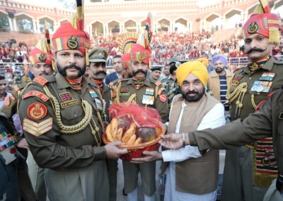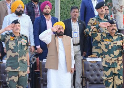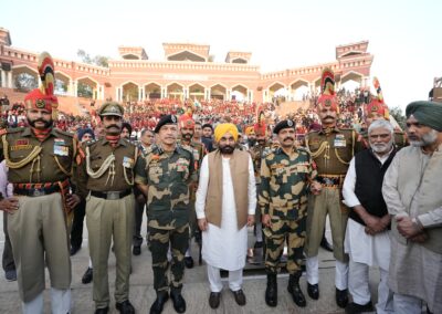 ਹੁਸੈਨੀਵਾਲਾ ਬਾਰਡਰ ‘ਤੇ ਰੀਟਰੀਟ ਸਮਾਰੋਹ ‘ਚ ਸ਼ਾਮਲ ਹੋਏ ਮੁੱਖ ਮੰਤਰੀ ਨੇ ਕਿਹਾ ਕਿ ਉਹ ਪਹਿਲੀ ਵਾਰ ਇਸ ਸਮਾਰੋਹ ਨੂੰ ਦੇਖ ਕੇ ਬਹੁਤ ਖੁਸ਼ ਹਨ। ਉਨ੍ਹਾਂ ਬੀ.ਐੱਸ.ਐੱਫ. ਦੇ ਅਧਿਕਾਰੀਆਂ ਨੂੰ ਕਿਹਾ ਕਿ ਉਹ ਇਸ ਇਤਿਹਾਸਕ ਸਥਾਨ ਨੂੰ ਨਵਾਂ ਰੂਪ ਦੇਣ ਲਈ ਵਿਸਥਾਰਤ ਪ੍ਰਸਤਾਵ ਪੇਸ਼ ਕਰਨ। ਭਗਵੰਤ ਸਿੰਘ ਮਾਨ ਨੇ ਕਿਹਾ ਕਿ ਸੂਬਾ ਸਰਕਾਰ ਇਸ ਪਵਿੱਤਰ ਸਥਾਨ ਦੇ ਵਿਆਪਕ ਵਿਕਾਸ ਲਈ ਵਚਨਬੱਧ ਹੈ।