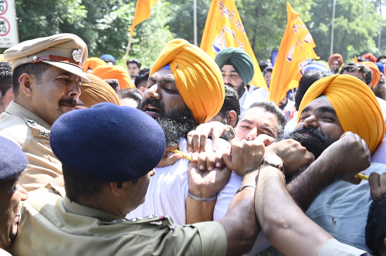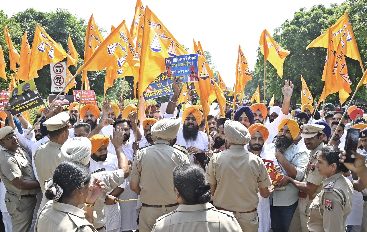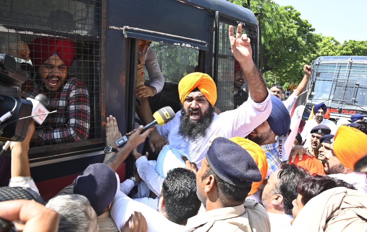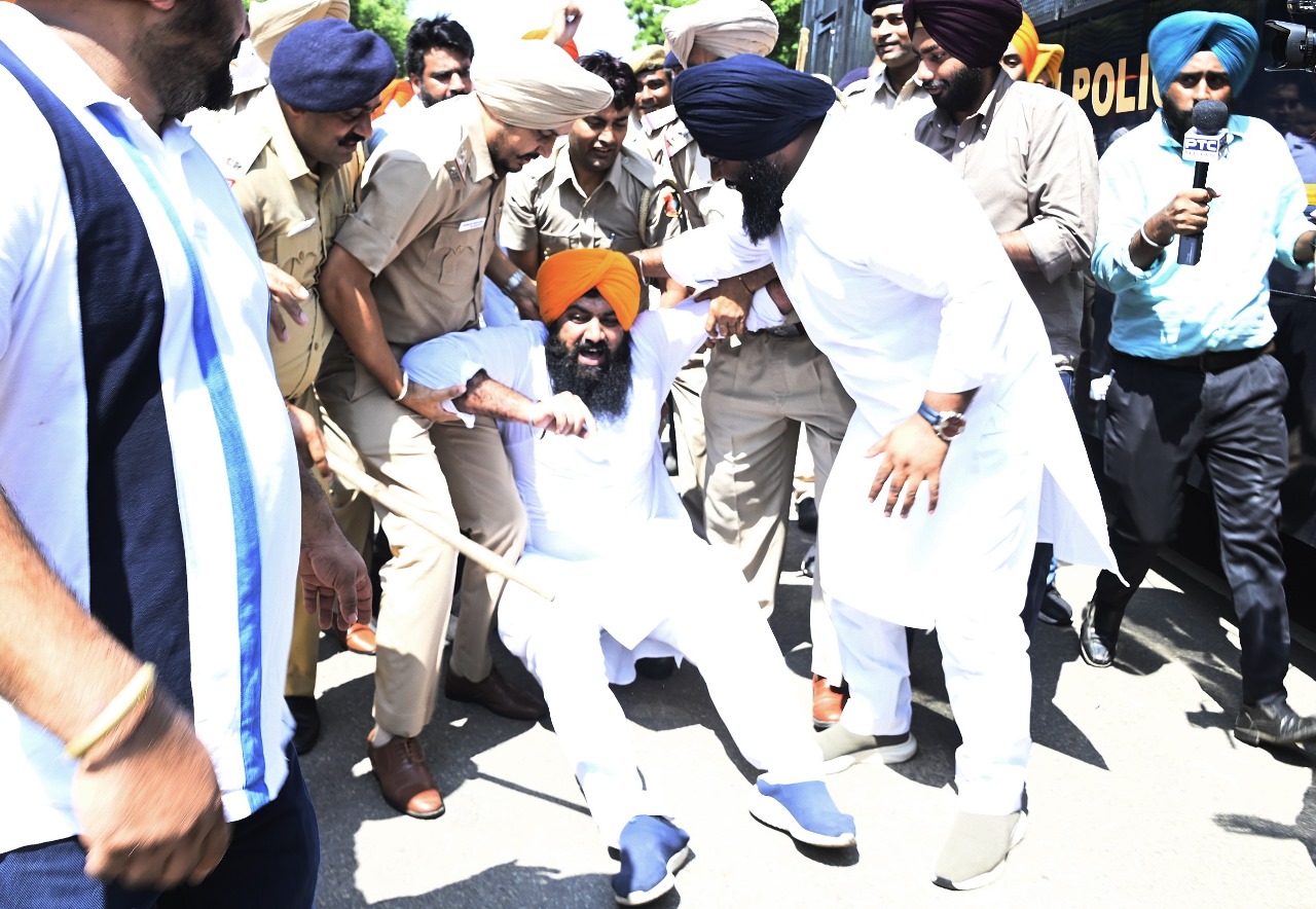 ਅੱਜ ਪੁਲਿਸ ਨੇ ਯੂਥ ਅਕਾਲੀ ਦਲ ਦੇ ਕਾਰਕੁੰਨਾਂ ਨੂੰ ਮੁੱਖ ਮੰਤਰੀ ਦੀ ਰਿਹਾਇਸ਼ ਦੇ ਮੁੱਖ ਗੇਟ ਵੱਲ ਨਹੀਂ ਜਾਣ ਦਿੱਤਾ ਤਾਂ ਉਹਨਾਂ ਨੇ ਪੁਲਿਸ ਦਾ ਘੇਰਾ ਤੋੜਨ ਦੀ ਕੋਸ਼ਿਸ਼ ਕੀਤੀ ਅਤੇ ਸੜਕ ’ਤੇ ਬੈਠ ਕੇ ਆਪ ਸਰਕਾਰ ਤੇ ਮੁੱਖ ਮੰਤਰੀ ਭਗਵੰਤ ਮਾਨ ਦੇ ਖਿਲਾਫ ਨਾਅਰੇਬਾਜ਼ੀ ਕੀਤੀ। ਉਹਨਾਂ ਨੂੰ ਬਾਅਦ ਵਿਚ ਹਿਰਾਸਤ ਵਿਚ ਲੈ ਲਿਆ ਗਿਆ।