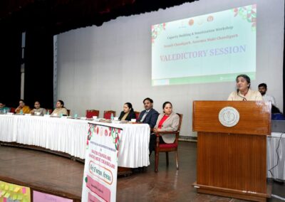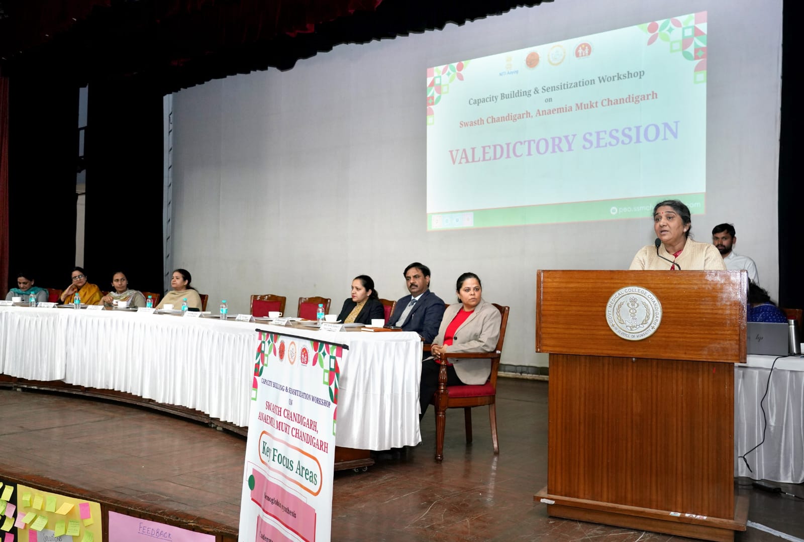 ਸਮਾਪਨ ਸੈਸ਼ਨ ਦੀ ਪ੍ਰਧਾਨਗੀ ਸਕੱਤਰ, ਸਮਾਜ ਭਲਾਈ ਅਤੇ ਵਿਸ਼ੇਸ਼ ਸਕੱਤਰ, ਵਿੱਤ-ਅਤੇ-ਨੋਡਲ ਅਫ਼ਸਰ, ਐੱਸਐੱਸਐੱਮ (SSM), ਸ਼੍ਰੀਮਤੀ ਅਨੁਰਾਧਾ ਚਗਤੀ ਨੇ ਕੀਤੀ। ਉਨ੍ਹਾਂ ਨੇ ਪ੍ਰਤੀਭਾਗੀਆਂ ਨੂੰ ਸੰਬੋਧਨ ਕਰਦੇ ਹੋਏ ਅਨੀਮੀਆ ਦੀ ਜਲਦੀ ਪਹਿਚਾਣ, ਪ੍ਰਭਾਵੀ ਸਲਾਹ-ਮਸ਼ਵਰਾ ਅਤੇ ਸਿਹਤ ਅਤੇ ਆਈਸੀਡੀਐੱਸ ਕਾਰਜਕਰਤਾਵਾਂ ਦੇ ਦਰਮਿਆਨ ਮਜ਼ਬੂਤ ਤਾਲਮੇਲ ਦੀ ਜ਼ਰੂਰਤ ‘ਤੇ ਬਲ ਦਿੱਤਾ। ਉਨ੍ਹਾਂ ਨੇ ਕਿਹਾ ਕਿ ਚੰਡੀਗੜ੍ਹ ਵਿੱਚ ਮਾਤਾਵਾਂ ਅਤੇ ਬੱਚਿਆਂ ਦੇ ਸਿਹਤ ਸੰਕੇਤਕਾਂ ਵਿੱਚ ਸੁਧਾਰ ਲਈ ਅਨੀਮੀਆ ਵਿੱਚ ਕਮੀ ਲਿਆਉਣਾ ਅਤਿਅੰਤ ਮਹੱਤਵਪੂਰਨ ਹੈ ਅਤੇ ‘ਅਨੀਮੀਆ ਮੁਕਤ ਚੰਡੀਗੜ੍ਹ’ ਦੇ ਲਕਸ਼ ਦੀ ਪ੍ਰਾਪਤੀ ਹਿਤ ਨਿਰੰਤਰ ਅੰਤਰ-ਵਿਭਾਗੀ ਸਹਿਯੋਗ ਜ਼ਰੂਰੀ ਹੈ।