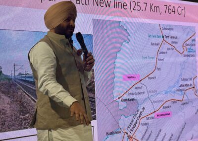 ਰੇਲ ਮੰਤਰਾਲੇ ਨੇ ਫਿਰੋਜ਼ਪੁਰ–ਪੱਟੀ ਰੇਲ ਲਿੰਕ ਪ੍ਰੋਜੈਕਟ ਨੂੰ ਮਨਜ਼ੂਰੀ ਦੇ ਦਿੱਤੀ ਹੈ। ਇਹ ਪ੍ਰੋਜੈਕਟ ਕੁੱਲ 25.72 ਕਿ.ਮੀ. ਲੰਬਾ ਹੋਵੇਗਾ ਅਤੇ ਇਸ ਦੀ ਅਨੁਮਾਨਿਤ ਲਾਗਤ ₹764.19 ਕਰੋੜ ਹੈ, ਜਿਸ ਵਿੱਚੋਂ ₹166 ਕਰੋੜ ਜ਼ਮੀਨ ਅਧਿਗ੍ਰਹਿ ਲਈ ਹੋਣਗੇ ਜੋ ਰੇਲਵੇ ਵੱਲੋਂ ਭਰੇ ਜਾਣਗੇ। ਅੱਜ ਮੀਡੀਆ ਬ੍ਰੀਫਿੰਗ ਦੌਰਾਨ ਇਹ ਜਾਣਕਾਰੀ ਦਿੰਦਿਆਂ ਰਵਨੀਤ ਸਿੰਘ ਬਿੱਟੂ, ਕੇਂਦਰੀ ਰੇਲਵੇ ਰਾਜ ਮੰਤਰੀ ਨੇ ਕਿਹਾ ਕਿ ਇਹ ਪ੍ਰੋਜੈਕਟ ਰਣਨੀਤਕ ਅਤੇ ਆਰਥਿਕ ਦੋਹਾਂ ਪੱਖੋਂ ਬਹੁਤ ਮਹੱਤਵਪੂਰਨ ਹੈ। ਇਸ ਨਾਲ ਫਿਰੋਜ਼ਪੁਰ ਅਤੇ ਅੰਮ੍ਰਿਤਸਰ ਵਿਚਕਾਰ ਦਾ ਫਾਸਲਾ 196 ਕਿ.ਮੀ. ਤੋਂ ਘਟ ਕੇ ਲਗਭਗ 100 ਕਿ.ਮੀ. ਰਹਿ ਜਾਵੇਗਾ, ਜਦਕਿ ਜੰਮੂ–ਫਿਰੋਜ਼ਪੁਰ–ਫਾਜ਼ਿਲਕਾ–ਮੁੰਬਈ ਕਾਰਿਡੋਰ 236 ਕਿ.ਮੀ. ਘੱਟ ਹੋ ਜਾਵੇਗਾ। ਇਹ ਪ੍ਰੋਜੈਕਟ ਮਾਲਵਾ ਅਤੇ ਮਾਝਾ ਖੇਤਰਾਂ ਵਿਚਕਾਰ ਇਕ ਮਹੱਤਵਪੂਰਨ ਕੜੀ ਸਾਬਤ ਹੋਵੇਗਾ, ਜਿਸ ਨਾਲ ਖੇਤਰੀ ਆਵਾਜਾਈ ਅਤੇ ਲੌਜਿਸਟਿਕ ਦੱਖਲਦਾਰੀ ਵਿਚ ਸੁਧਾਰ ਆਏਗਾ।