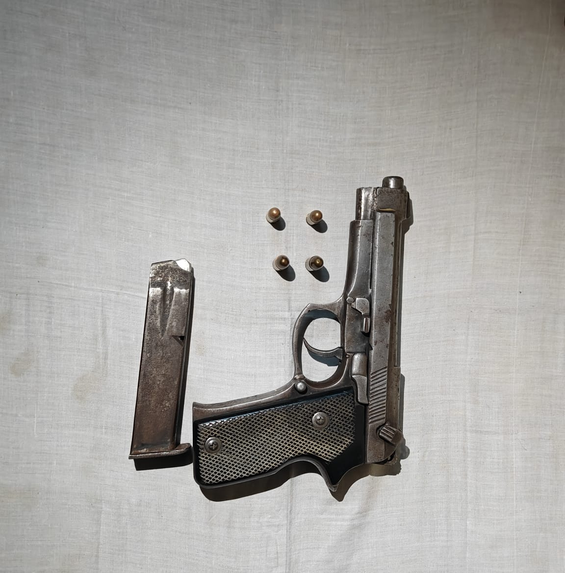 ਪੁਲਿਸ ਟੀਮਾਂ ਨੇ ਮੁਲਜ਼ਮ ਦੇ ਕਬਜ਼ੇ ‘ਚੋਂ ਇੱਕ ਗੈਰ-ਕਾਨੂੰਨੀ .32 ਬੋਰ ਪਿਸਤੌਲ ਅਤੇ ਚਾਰ ਜ਼ਿੰਦਾ ਕਾਰਤੂਸ ਬਰਾਮਦ ਕੀਤੇ ਹਨ।