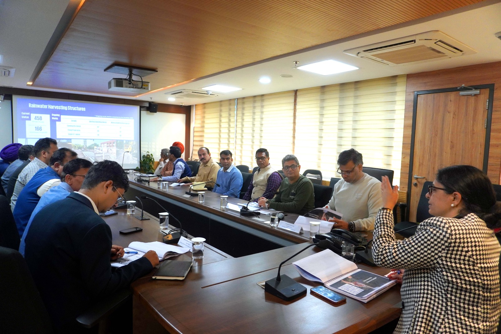ਸ਼੍ਰੀਮਤੀ ਗੁਰਨੀਤ ਤੇਜ ਨੇ ਖਾਸ ਤੌਰ ‘ਤੇ ਚੰਗੀ ਤਰ੍ਹਾਂ ਸੰਭਾਲੇ ਗਏ ਅੰਮ੍ਰਿਤ ਸਰੋਵਰਾਂ ਅਤੇ ਮੀਂਹ ਦੇ ਪਾਣੀ ਦੀ ਸੰਭਾਲ ਦੇ ਢਾਂਚੇ ਦੇ ਵਿਆਪਕ ਨੈੱਟਵਰਕ ਦੀ ਪ੍ਰਸ਼ੰਸਾ ਕੀਤੀ, ਇਹ ਕਹਿੰਦੇ ਹੋਏ ਕਿ ਚੰਡੀਗੜ੍ਹ “ਦੇਸ਼ ਵਿੱਚ ਮੀਂਹ ਦੇ ਪਾਣੀ ਦੀ ਸੰਭਾਲ ਲਈ ਇੱਕ ਆਦਰਸ਼ ਮਾਡਲ ਬਣਨ ਦੇ ਨੇੜੇ ਹੈ।” ਸਹਿਯੋਗੀ ਜਲ ਸਰੋਤ ਪ੍ਰਬੰਧਨ ਦੀ ਜ਼ਰੂਰਤ ‘ਤੇ ਜ਼ੋਰ ਦਿੰਦੇ ਹੋਏ, ਉਸਨੇ ਚੰਡੀਗੜ੍ਹ ਅਤੇ ਗੁਆਂਢੀ ਖੇਤਰਾਂ – ਮੋਹਾਲੀ, ਪੰਚਕੂਲਾ ਅਤੇ ਜ਼ੀਰਕਪੁਰ ਨੂੰ ਸ਼ਾਮਲ ਕਰਦੇ ਹੋਏ ਇੱਕ ਅੰਤਰਰਾਜੀ ਜਲ ਸਰੋਤ ਪ੍ਰਬੰਧਨ ਨੀਤੀ ਵਿਕਸਤ ਕਰਨ ਦੀ ਸਿਫਾਰਸ਼ ਕੀਤੀ। ਉਸਨੇ ਐਮਸੀਸੀ ਅਤੇ ਚੰਡੀਗੜ੍ਹ ਪ੍ਰਸ਼ਾਸਨ ਨੂੰ ਹੋਰ ਵਿਗਿਆਨਕ ਅਤੇ ਟਿਕਾਊ ਨਤੀਜਿਆਂ ਲਈ ਭੂਮੀਗਤ ਜਲ ਸੁਰੱਖਿਆ ਯੋਜਨਾਵਾਂ ਦੀ ਯੋਜਨਾ ਬਣਾਉਂਦੇ ਸਮੇਂ ਕੇਂਦਰੀ ਭੂਮੀਗਤ ਜਲ ਬੋਰਡ (ਸੀਜੀਡਬਲਯੂਬੀ) ਨੂੰ ਸ਼ਾਮਲ ਕਰਨ ਦੀ ਸਲਾਹ ਦਿੱਤੀ।