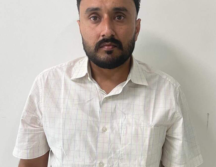 ਇਸ ਸਬੰਧੀ ਜਾਣਕਾਰੀ ਦਿੰਦਿਆਂ ਵਿਜੀਲੈਂਸ ਬਿਊਰੋ ਦੇ ਬੁਲਾਰੇ ਨੇ ਦੱਸਿਆ ਕਿ ਫਰਾਰ ਮੁਲਜ਼ਮ ਧਰਮਿੰਦਰ ਸਿੰਘ ਸੰਧੂ ਵਾਸੀ ਰਾਮਾ ਮੰਡੀ, ਜਲੰਧਰ ਨੂੰ ਆਈ.ਪੀ.ਸੀ. ਦੀ ਧਾਰਾ 406, 420, 465, 467, 468, 471, 384 ਅਤੇ 120 ਬੀ ਤਹਿਤ ਸਟੇਟ ਕ੍ਰਾਈਮ ਪੁਲਿਸ ਸਟੇਸ਼ਨ, ਐਸ.ਏ.ਐਸ. ਨਗਰ, ਪੰਜਾਬ ਵਿਖੇ ਮਿਤੀ 21-02-2023 ਨੂੰ ਦਰਜ ਐਫ.ਆਈ.ਆਰ. ਨੰਬਰ 01 ਵਿੱਚ ਗ੍ਰਿਫ਼ਤਾਰ ਕੀਤਾ ਗਿਆ ਹੈ।