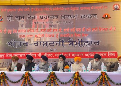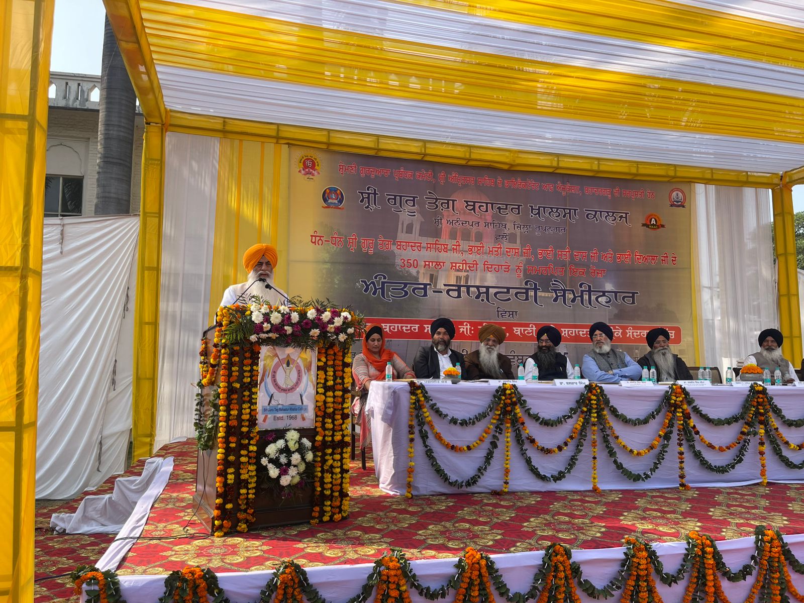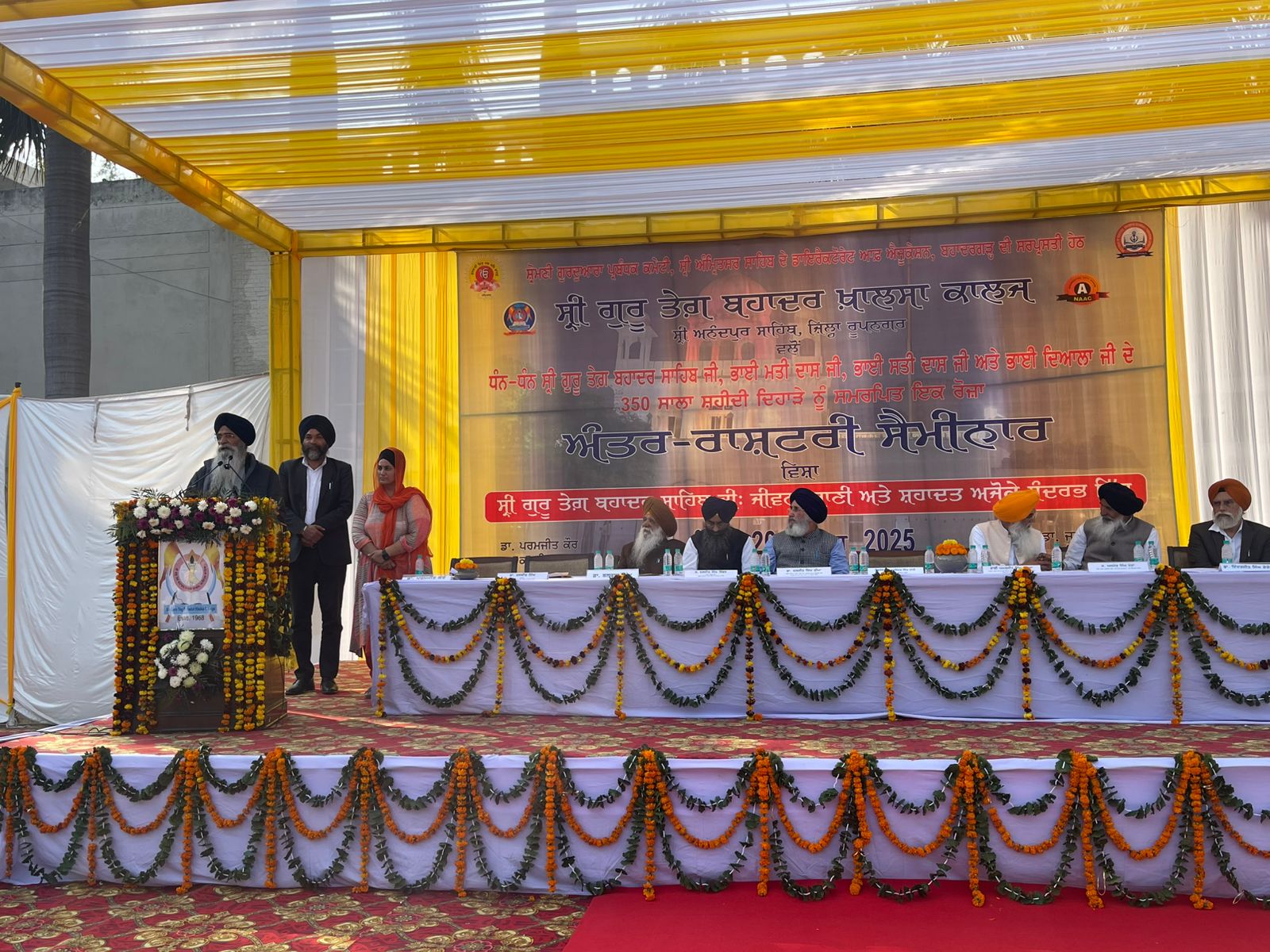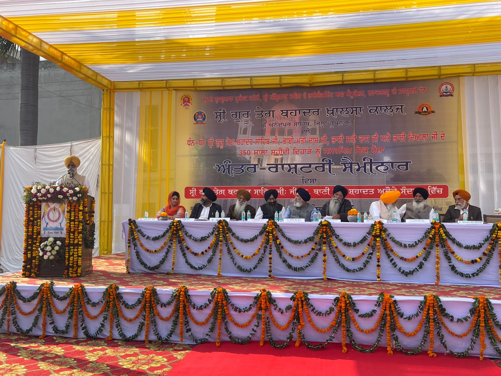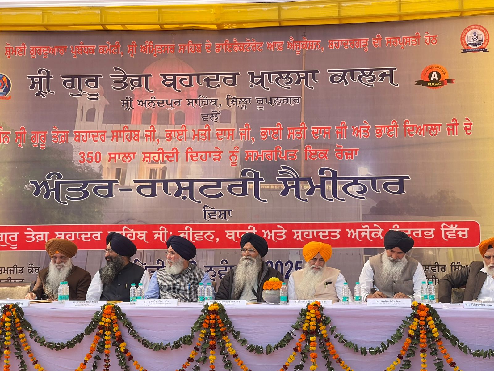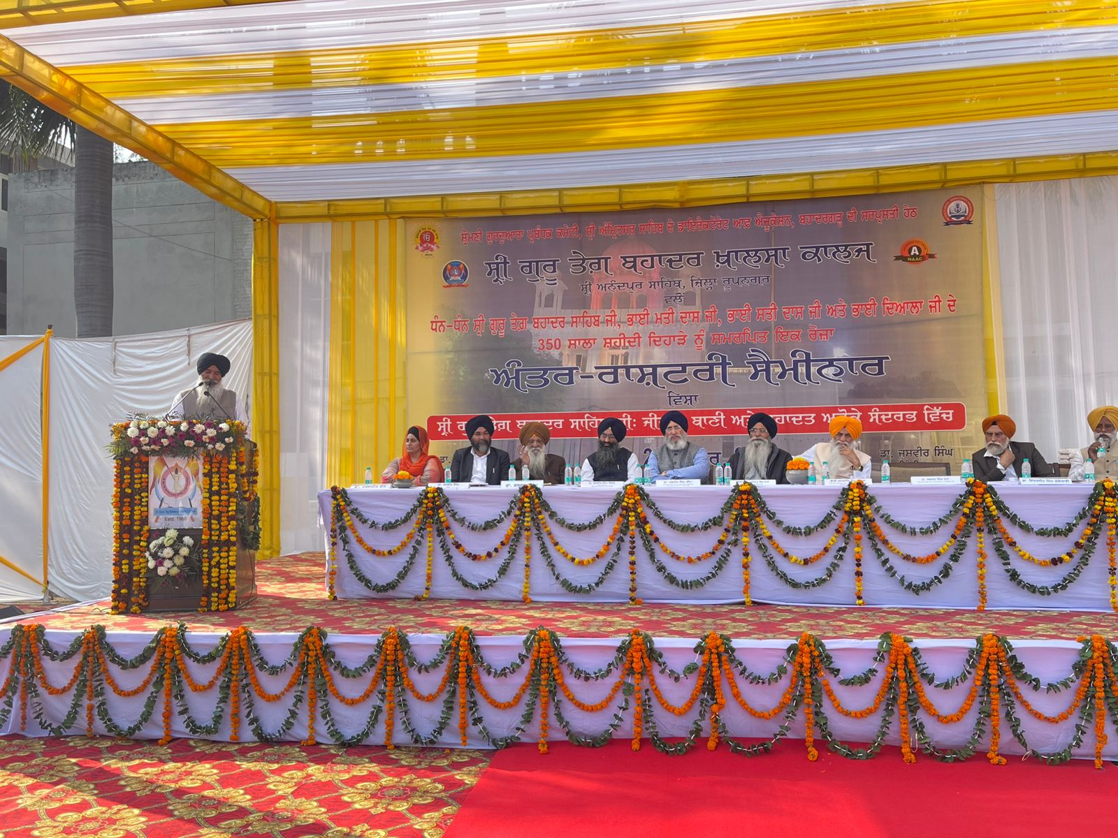 ਸ਼੍ਰੋਮਣੀ ਗੁਰਦੁਆਰਾ ਪ੍ਰਬੰਧਕ ਕਮੇਟੀ ਦੇ ਡਾਇਰੈਕਟੋਰੇਟ ਆਫ ਐਜੂਕੇਸ਼ਨ ਵੱਲੋਂ ਸ੍ਰੀ ਗੁਰੂ ਤੇਗ ਬਹਾਦਰ ਜੀ, ਭਾਈ ਮਤੀ ਦਾਸ, ਭਾਈ ਸਤੀ ਦਾਸ, ਭਾਈ ਦਿਆਲਾ ਜੀ ਦੇ 350 ਸਾਲਾ ਸ਼ਹੀਦੀ ਦਿਹਾੜੇ ਨੂੰ ਸਮਰਪਿਤ ‘ ਸ੍ਰੀ ਗੁਰੂ ਤੇਗ ਬਹਾਦਰ ਜੀ: ਜੀਵਨ, ਬਾਣੀ ਤੇ ਸ਼ਹਾਦਤ ਅਜੋਕੇ ਸੰਦਰਭ ਵਿਚ’ ਵਿਸ਼ੇ ‘ਤੇ ਸ੍ਰੀ ਗੁਰੂ ਤੇਗ ਬਹਾਦਰ ਖਾਲਸਾ ਕਾਲਜ ਵਿਖੇ ਇਕ ਰੋਜ਼ਾ ਅੰਤਰ-ਰਾਸ਼ਟਰੀ ਸੈਮੀਨਾਰ ਕਰਵਾਇਆ ਗਿਆ। ਇਸ ਮੌਕੇ ਸ਼੍ਰੋਮਣੀ ਗੁਰਦੁਆਰਾ ਪ੍ਰਬੰਧਕ ਕਮੇਟੀ ਦੇ ਪ੍ਰਧਾਨ ਐਡਵੋਕੇਟ ਹਰਜਿੰਦਰ ਸਿੰਘ ਧਾਮੀ, ਸ਼੍ਰੋਮਣੀ ਅਕਾਲੀ ਦਲ ਦੇ ਸੀਨੀਅਰ ਮੀਤ ਪ੍ਰਧਾਨ ਡਾ. ਦਲਜੀਤ ਸਿੰਘ ਚੀਮਾ, ਸਿੱਖ ਬੁੱਧੀਜੀਵੀ ਡਾ. ਬਲਕਾਰ ਸਿੰਘ, ਡਾ. ਇੰਦਰਜੀਤ ਸਿੰਘ ਗੋਗੋਆਣੀ, ਸ਼੍ਰੋਮਣੀ ਕਮੇਟੀ ਦੇ ਅੰਤ੍ਰਿਗ ਕਮੇਟੀ ਮੈਂਬਰ ਡਾ. ਦਿਲਜੀਤ ਸਿੰਘ ਭਿੰਡਰ, ਮੈਂਬਰ ਭਾਈ ਅਮਰਜੀਤ ਸਿੰਘ ਚਾਵਲਾ, ਸ. ਅਜਮੇਰ ਸਿੰਘ ਖੇੜਾ ਸਮੇਤ ਵੱਡੀ ਗਿਣਤੀ ਕਾਲਜ ਪ੍ਰੋਫੈਸਰ, ਇਲਾਕੇ ਦੇ ਵਕੀਲ ਅਤੇ ਪਤਵੰਤੇ ਸ਼ਾਮਿਲ ਹੋਏ।