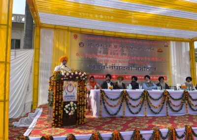 ਇਸ ਮੌਕੇ ਪੰਜਾਬੀ ਯੂਨੀਵਰਸਿਟੀ ਪਟਿਆਲਾ ਦੇ ਸ੍ਰੀ ਗੁਰੂ ਗੋਬਿੰਦ ਸਿੰਘ ਚੇਅਰ ਦੇ ਮੁਖੀ ਡਾ. ਗੁਰਮੀਤ ਸਿੰਘ ਸਿੱਧੂ ਨੇ ਕਿਹਾ ਕਿ ਦੁਨੀਆ ਦੇ ਅਕਾਦਮਿਕ ਤੇ ਬੌਧਿਕ ਸ਼ਬਦਕੋਸ਼ ਵਿਚ ਧਰਮ ਦੀ ਵਿਆਖਿਆ ਸਮਰਪਣ, ਸਿੱਦਕ ਅਤੇ ਦ੍ਰਿੜ੍ਹਤਾ ਦੇ ਨੇਕ ਅਮਲ ਦੇ ਰੂਪ ਵਿਚ ਕੀਤੀ ਜਾਂਦੀ ਹੈ ਅਤੇ ਸ੍ਰੀ ਗੁਰੂ ਤੇਗ ਬਹਾਦਰ ਜੀ ਦੀ ਸ਼ਹਾਦਤ ਇਸ ਦੀ ਅਦੁੱਤੀ ਮਿਸਾਲ ਹੈ। ਉਨ੍ਹਾਂ ਨੇ ਨੌਵੇਂ ਪਾਤਸ਼ਾਹ ਦੇ 350 ਸਾਲਾ ਸ਼ਹੀਦੀ ਦਿਹਾੜੇ ਨੂੰ ਮਨਾਉਂਦਿਆਂ ਸਾਰਿਆਂ ਨੂੰ ਆਤਮ ਚਿੰਤਨ ਕਰਨ ਦਾ ਸੱਦਾ ਦਿੱਤਾ ਤਾਂ ਜੋ ਇਹ ਵੇਖ ਸਕੀਏ ਕਿ ਅੱਜ ਅਸੀਂ ਧਰਮ ਦੇ ਗਾਡੀਰਾਹ ‘ਤੇ ਸਹੀ ਰੂਪ ਵਿਚ ਕਿੰਨਾ ਕੁ ਚੱਲ ਰਹੇ ਹਾਂ।