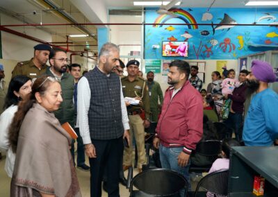 ਦੌਰੇ ਦੌਰਾਨ ਸਿਹਤ ਸੇਵਾਵਾਂ ਦੇ ਡਾਇਰੈਕਟਰ ਡਾ. ਸੁਮਨ ਸਿੰਘ; ਮੈਡੀਕਲ ਸੁਪਰਡੈਂਟ ਡਾ. ਸਦਭਾਵਨਾ; ਡਿਪਟੀ ਮੈਡੀਕਲ ਸੁਪਰਡੈਂਟ ਡਾ. ਪਰਮਜੀਤ ਸਿੰਘ; ਅਤੇ ਚੰਡੀਗੜ੍ਹ ਪ੍ਰਸ਼ਾਸਨ ਦੇ ਹੋਰ ਅਧਿਕਾਰੀ ਵੀ ਮੌਜੂਦ ਸਨ।
