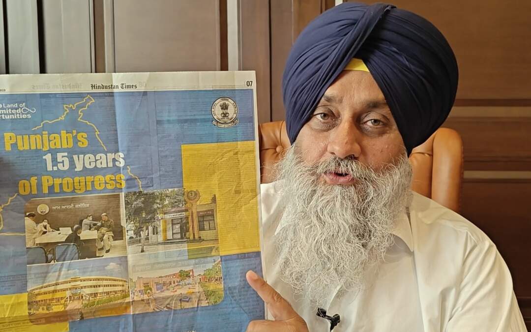 ਸ਼੍ਰੋਮਣੀ ਅਕਾਲੀ ਦਲ ਦੇ ਪ੍ਰਧਾਨ ਸਰਦਾਰ ਸੁਖਬੀਰ ਸਿੰਘ ਬਾਦਲ ਨੇ ਅੱਜ ਮੁੱਖ ਮੰਤਰੀ ਸ੍ਰੀ ਭਗਵੰਤ ਮਾਨ ਵੱਲੋਂ ਆਮ ਆਦਮੀ ਪਾਰਟੀ ਸਰਕਾਰ ਦੇ ਡੇਢ ਸਾਲ ਪੂਰੇ ਹੋਣ ’ਤੇ ਆਪਣੀਆਂ ਅਖੌਤੀ ਪ੍ਰਾਪਤੀਆਂ ਨੂੰ ਉਜਾਗਰ ਕਰਨ ਵਾਸਤੇ ਇਕ ਦਿਨ ਵਿਚ 25 ਕਰੋੜ ਰੁਪਏ ਬਰਬਾਦ ਕਰਨ ਦੀ ਨਿਖੇਧੀ ਕੀਤੀ ਤੇ ਕਿਹਾ ਕਿ ਸਰਕਾਰ ਕੋਲ ਵਿਕਾਸ, ਬੁਨਿਆਦੀ ਢਾਂਚੇ ਤੇ ਸਮਾਜ ਭਲਾਈ ਮੁਹਾਜ਼ ’ਤੇ ਵਿਖਾਉਣ ਵਾਸਤੇ ਕੱਖ ਨਹੀਂ ਹੈ।