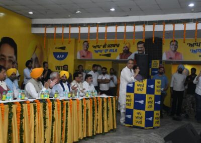 ਇਸ ਮੌਕੇ ਮਹਿੰਦਰ ਭਗਤ, ਬਰਿੰਦਰ ਗੋਇਲ, ਹਰਦੀਪ ਸਿੰਘ ਮੁੰਡੀਆਂ, ਹਰਭਜਨ ਸਿੰਘ ਈਟੀਓ, ਲਾਲਜੀਤ ਸਿੰਘ ਭੁੱਲਰ ਅਤੇ ਮੇਅਰ ਪ੍ਰਿੰਸੀਪਲ ਇੰਦਰਜੀਤ ਕੌਰ ਸਮੇਤ ਕਈ ਸੀਨੀਅਰ ‘ਆਪ’ ਆਗੂ ਹਾਜ਼ਰ ਸਨ। ਹਜ਼ਾਰਾਂ ਪਾਰਟੀ ਵਰਕਰਾਂ ਅਤੇ ਸਮਰਥਕਾਂ ਨੇ ਮੀਟਿੰਗ ਵਿੱਚ ਸ਼ਿਰਕਤ ਕੀਤੀ ਅਤੇ ਉਮੀਦਵਾਰ ਲਈ ਜ਼ਮੀਨੀ ਪੱਧਰ ‘ਤੇ ਮਜ਼ਬੂਤ ਸਮਰਥਨ ਦਿਖਾਇਆ।