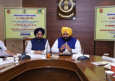 ਅੱਜ, ਪੰਜਾਬ ਦੇ ਸਿੱਖਿਆ ਮੰਤਰੀ ਸ੍ਰ ਹਰਜੋਤ ਸਿੰਘ ਬੈਂਸ ਦੀ ਮੌਜੂਸਗੀ ਵਿਚ, ਡਾ. ਵਿਕਰਮਜੀਤ ਸਿੰਘ ਸਾਹਨੀ , ਪਦਮ ਸ਼੍ਰੀ, ਸੰਸਦ ਮੈਂਬਰ, ਰਾਜ ਸਭਾ ਅਤੇ ਪੰਜਾਬ ਦੇ ਤਕਨੀਕੀ ਸਿੱਖਿਆ ਵਿਭਾਗ ਦਰਮਿਆਨ ਇੱਕ ਸਮਝੌਤੇ ‘ਤੇ ਦਸਖਤ ਕੀਤੇ ਗਏ।ਸਮਝੌਤੇ ਅਨੁਸਾਰ ਡਾ. ਸਾਹਨੀ ਪੰਜ ਆਈ. ਟੀ ਆਈਜ਼ ਦੇ ਅਪਗ੍ਰੇਡੇਸ਼ਨ ਲਈ 10 ਕਰੋੜ ਰੁਪਏ ਦਾ ਯੋਗਦਾਨ ਪਾਉਣਗੇ। ਇਹ ਹਨ : ਆਈ. ਟੀ ਆਈ. ਲੁਧਿਆਣਾ 2 ਕਰੋੜ, ਪ ਆਈ. ਟੀ ਆਈ ਟਿਆਲਾ 3 ਕਰੋੜ, ਮੋਹਾਲੀ ਆਈ. ਟੀ ਆਈ – 1.5 ਕਰੋੜ, ਸੁਨਾਮ ਆਈ. ਟੀ ਆਈ – 1.66 ਕਰੋੜ, ਅਤੇ ਆਈ. ਟੀ ਆਈ ਲਾਲੜੂ- 2 ਕਰੋੜ।