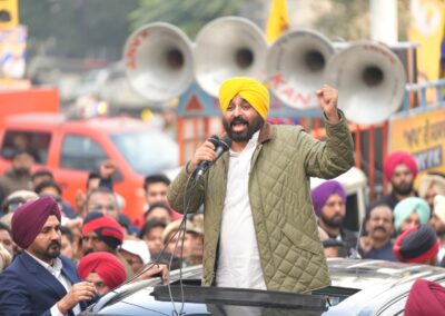 ਮੁੱਖ ਮੰਤਰੀ ਭਗਵੰਤ ਮਾਨ ਨੇ ਬੁੱਧਵਾਰ ਨੂੰ ਜਲੰਧਰ ‘ਚ ਨਗਰ ਨਿਗਮ ਚੋਣਾਂ ਲਈ ‘ਆਪ’ ਉਮੀਦਵਾਰਾਂ ਦੇ ਹੱਕ ‘ਚ ਚੋਣ ਪ੍ਰਚਾਰ ਕੀਤਾ। ਉਨ੍ਹਾਂ ਇੱਥੇ ਪਾਰਟੀ ਆਗੂਆਂ ਤੇ ਵਰਕਰਾਂ ਨਾਲ ਇੱਕ ਵੱਡਾ ਰੋਡ ਸ਼ੋਅ ਕੀਤਾ ਅਤੇ ਲੋਕਾਂ ਨੂੰ ‘ਆਪ’ ਦੇ ਉਮੀਦਵਾਰਾਂ ਨੂੰ ਜਿਤਾਉਣ ਲਈ ਸਮਰਥਨ ਦੇਣ ਦੀ ਅਪੀਲ ਕੀਤੀ।