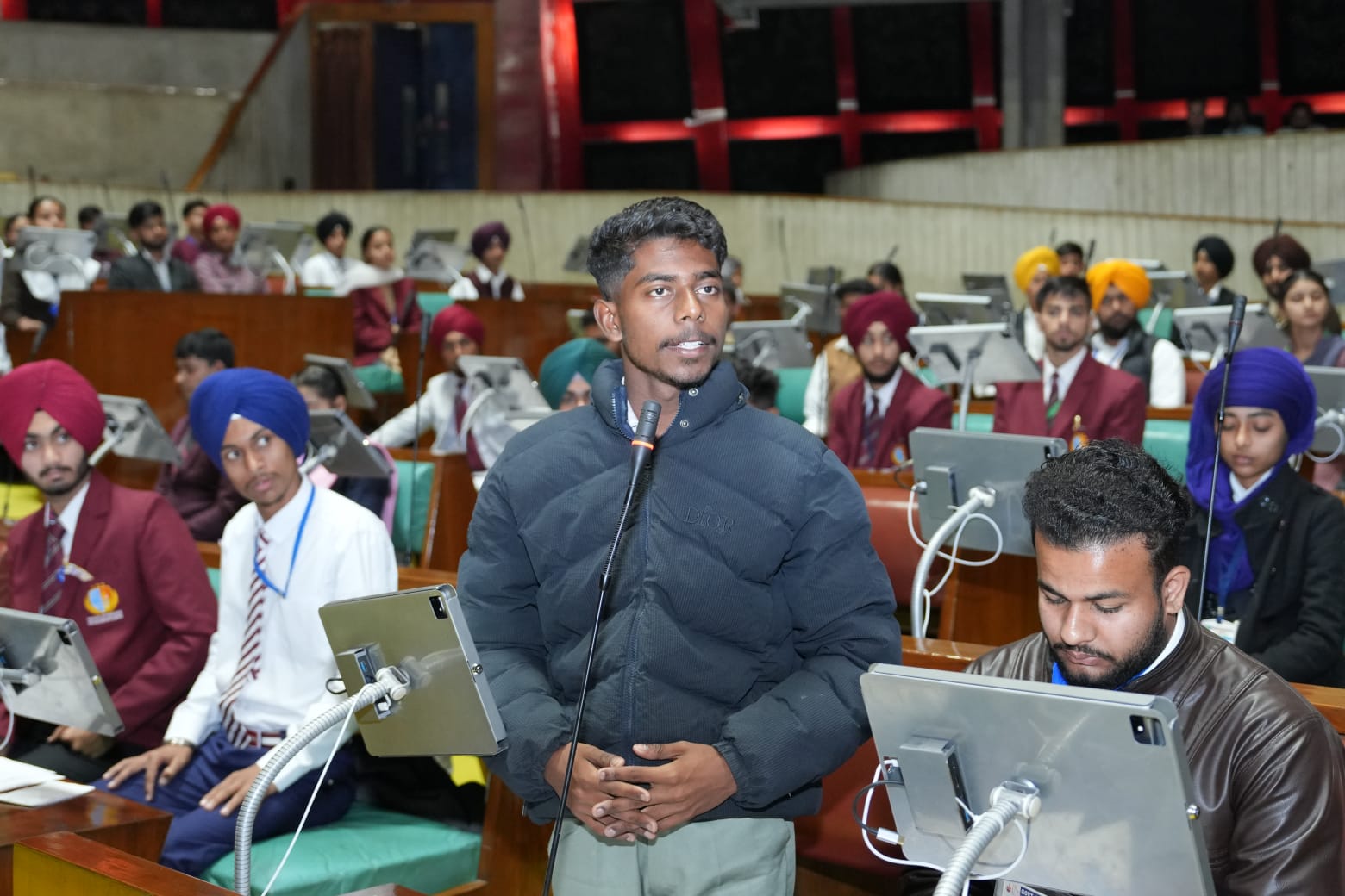 ਪੰਜਾਬ ਵਿਧਾਨ ਸਭਾ ਦੇ ਸਪੀਕਰ ਸ. ਕੁਲਤਾਰ ਸਿੰਘ ਸੰਧਵਾਂ ਨੇ ਦੱਸਿਆ ਕਿ ਅਸੀਂ ਸੰਵਿਧਾਨ ਦਿਵਸ ਯਾਨੀ 26 ਨਵੰਬਰ 2025 ਨੂੰ ਪੰਜਾਬ ਵਿਧਾਨ ਸਭਾ ਦਾ ਇੱਕ ਮੌਕ ਸੈਸ਼ਨ ਆਯੋਜਿਤ ਕਰਨ ਜਾ ਰਹੇ ਹਾਂ। ਇਸ ਸੰਦਰਭ ਵਿੱਚ, ਪੰਜਾਬ ਦੇ 117 ਹਲਕਿਆਂ ਦੇ ਵਿਦਿਆਰਥੀ ਮੌਕ ਸੈਸ਼ਨ ਦੀ ਰਿਹਰਸਲ ਲਈ ਪੰਜਾਬ ਵਿਧਾਨ ਸਭਾ ਵਿੱਚ ਆਏ ਹਨ ਅਤੇ ਸਾਡੇ ਸਬੰਧਤ ਸਟਾਫ ਨੇ ਉਨ੍ਹਾਂ ਨੂੰ ਸਿਖਲਾਈ ਦਿੱਤੀ ਹੈ ਤਾਂ ਜੋ ਉਹ ਇਸ ਸਦਨ ਵਿੱਚ ਆਪਣੇ ਹਲਕੇ ਦੇ ਮੁੱਦਿਆਂ ‘ਤੇ ਬਹਿਸ ਕਰ ਸਕਣ ਅਤੇ ਉਨ੍ਹਾਂ ਨੂੰ ਉਠਾ ਸਕਣ। ਇਹ ਵਿਦਿਆਰਥੀਆਂ ਵਿੱਚ ਰਾਜਨੀਤੀ ਵਿੱਚ ਦਿਲਚਸਪੀ ਪੈਦਾ ਕਰਨ ਅਤੇ ਆਪਣੇ ਭਵਿੱਖ ਦੇ ਜੀਵਨ ਵਿੱਚ ਮੁਖਤਿਆਰ ਆਗੂ ਬਣ ਸਕਣ ਲਈ ਆਪਣੀ ਕਿਸਮ ਦੀ ਪਹਿਲੀ ਪਹਿਲ ਹੈ। ਇਸ ਤਰ੍ਹਾਂ, ਵਿਦਿਆਰਥੀ ਸੰਵਿਧਾਨ ਦਾ ਵਿਹਾਰਕ ਗਿਆਨ ਸਿੱਖਣਗੇ ਅਤੇ ਵਿਧਾਨਕ ਪ੍ਰਕਿਰਿਆਵਾਂ ਨੂੰ ਬਿਹਤਰ ਤਰੀਕੇ ਨਾਲ ਸਮਝਣਗੇ।
