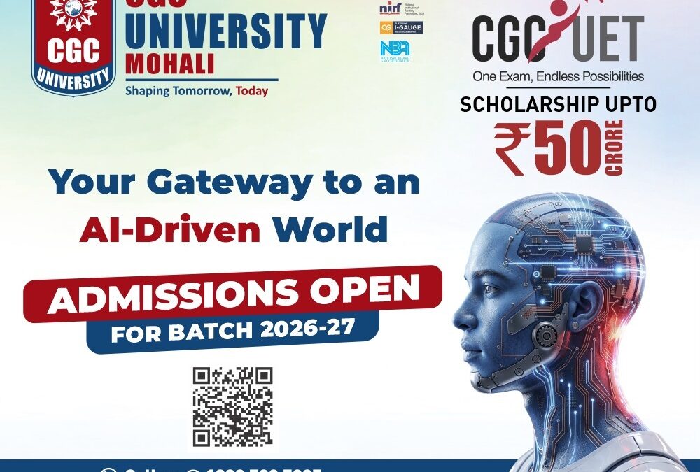 CGC ਯੂਨੀਵਰਸਿਟੀ, ਮੋਹਾਲੀ ਵਿੱਚ ਬੈਚ 2026–27 ਲਈ ਦਾਖਲੇ ਸ਼ੁਰੂ ਹੋ ਚੁੱਕੇ ਹਨ। ਇਹ ਮੌਕਾ ਉਹਨਾਂ ਵਿਦਿਆਰਥੀਆਂ ਲਈ ਹੈ ਜੋ ਆਪਣਾ ਕਰੀਅਰ ਟੈਕਨੋਲੋਜੀ, ਇੰਜੀਨੀਅਰਿੰਗ, ਮੈਨੇਜਮੈਂਟ ਅਤੇ ਨਵੀਂ ਸੋਚ ਨਾਲ ਜੋੜਨਾ ਚਾਹੁੰਦੇ ਹਨ।
