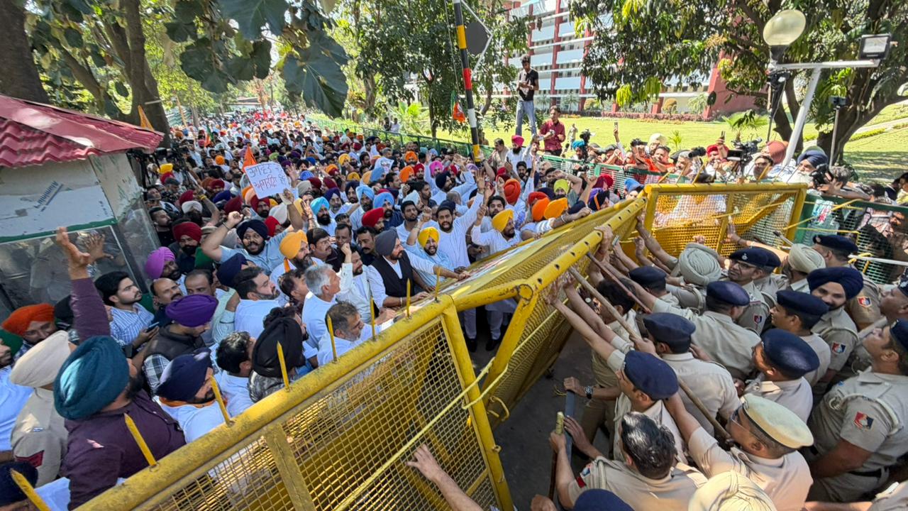 ਆਪ ਪੰਜਾਬ ਨੇ ਸੰਸਦ ਮੈਂਬਰ ਸੰਜੇ ਸਿੰਘ ਦੀ ਗ੍ਰਿਫਤਾਰੀ ਦਾ ਕੀਤਾ ਵਿਰੋਧ, ਚੰਡੀਗੜ੍ਹ ਸਥਿਤ ਭਾਜਪਾ ਦਫਤਰ ਅੱਗੇ ਦਿੱਤਾ ਧਰਨਾ
