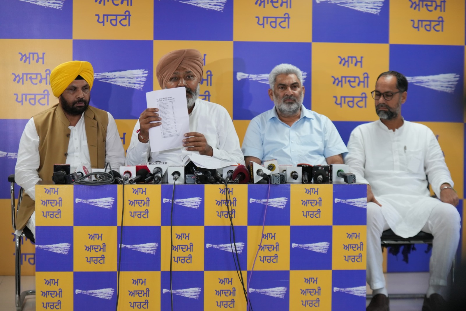 ਬੁੱਧਵਾਰ ਨੂੰ ਕੈਬਨਿਟ ਮੰਤਰੀ ਹਰਪਾਲ ਸਿੰਘ ਚੀਮਾ, ਹਰਭਜਨ ਸਿੰਘ ਈਟੀਓ ਅਤੇ ਲਾਲਚੰਦ ਕਟਾਰੂਚੱਕ ਅਤੇ ‘ਆਪ’ ਆਗੂ ਪਵਨ ਕੁਮਾਰ ਟੀਨੂੰ ਨੇ ਚੰਡੀਗੜ੍ਹ ਪਾਰਟੀ ਦਫ਼ਤਰ ਵਿੱਚ ਇਸ ਮੁੱਦੇ ’ਤੇ ਪ੍ਰੈਸ ਕਾਨਫਰੰਸ ਦੌਰਾਨ ਪੱਤਰਕਾਰਾਂ ਨੂੰ ਸੰਬੋਧਨ ਕੀਤਾ। ‘ਆਪ’ ਆਗੂਆਂ ਨੇ ਕਿਹਾ ਕਿ ਭਾਜਪਾ ਪਿਛਲੇ ਕਈ ਸਾਲਾਂ ਤੋਂ ਲਗਾਤਾਰ ਕਿਸੇ ਵੀ ਤਰੀਕੇ ਨਾਲ ਰਾਖਵੇਂਕਰਨ ਨੂੰ ਖ਼ਤਮ ਕਰਨ ਦੀ ਕੋਸ਼ਿਸ਼ ਕਰ ਰਹੀ ਹੈ।